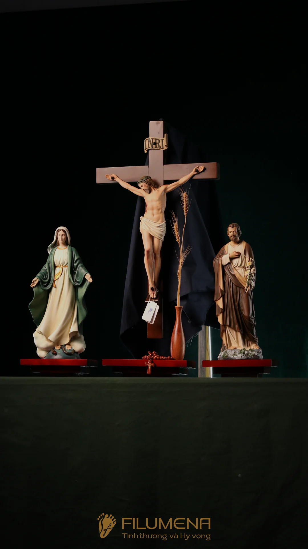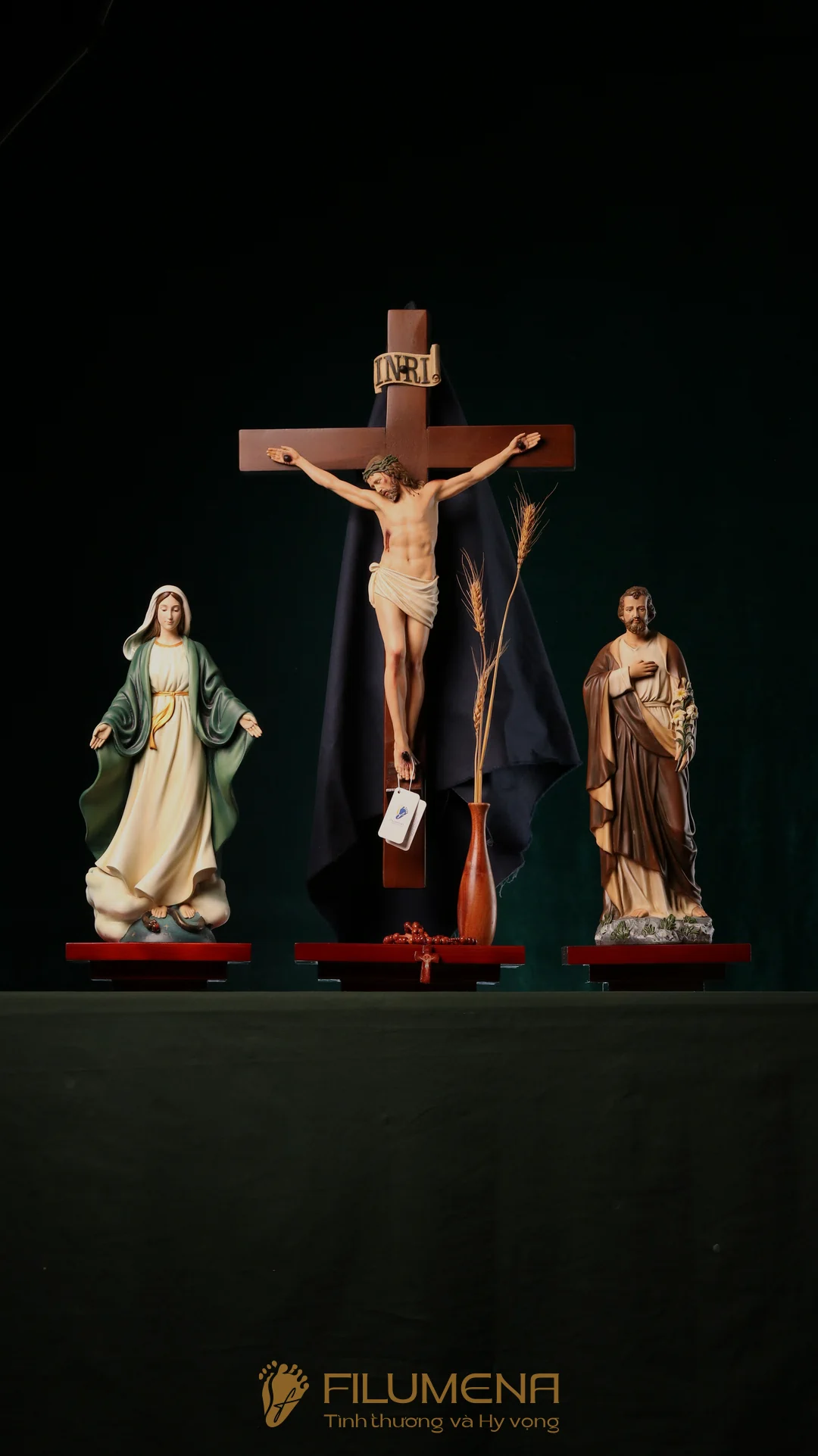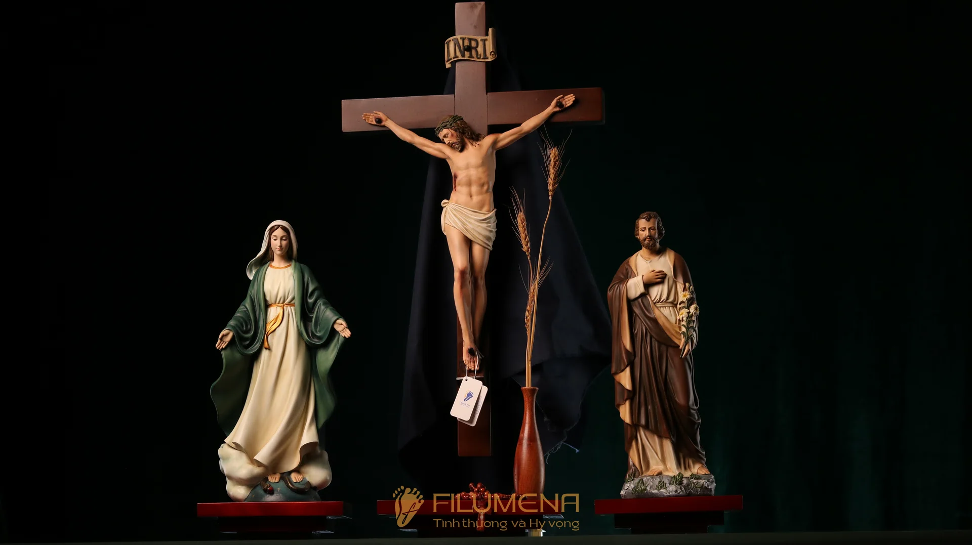 Bộ màu phù hợp : Filumena phối sẵn bộ tượng Chúa, Đức Mẹ, Thánh Giuse theo màu sắc hài hòa, thiết kế riêng cho phù hợp các không gian hiện đại hay cổ điển, giúp việc sắp đặt bàn thờ chuẩn và thuận tiện.