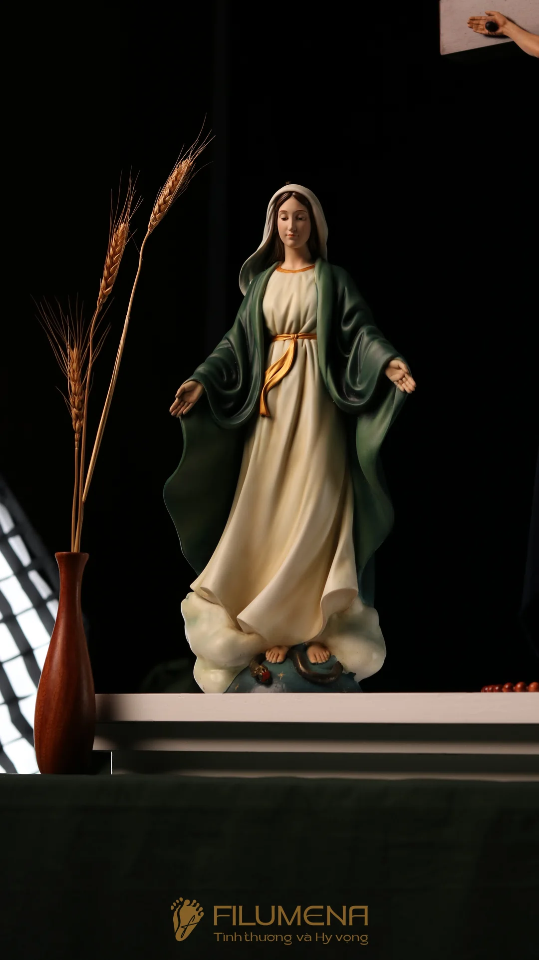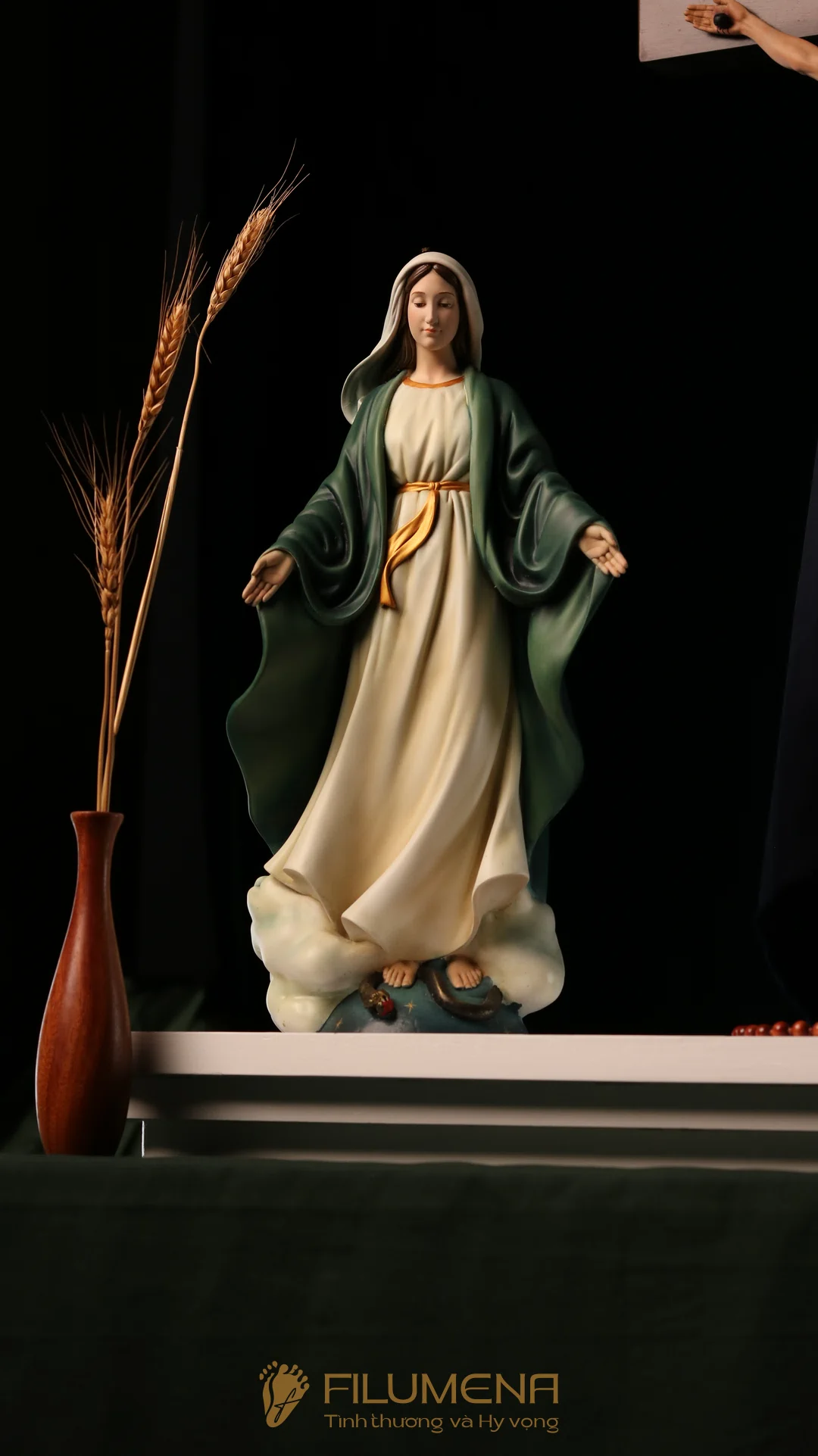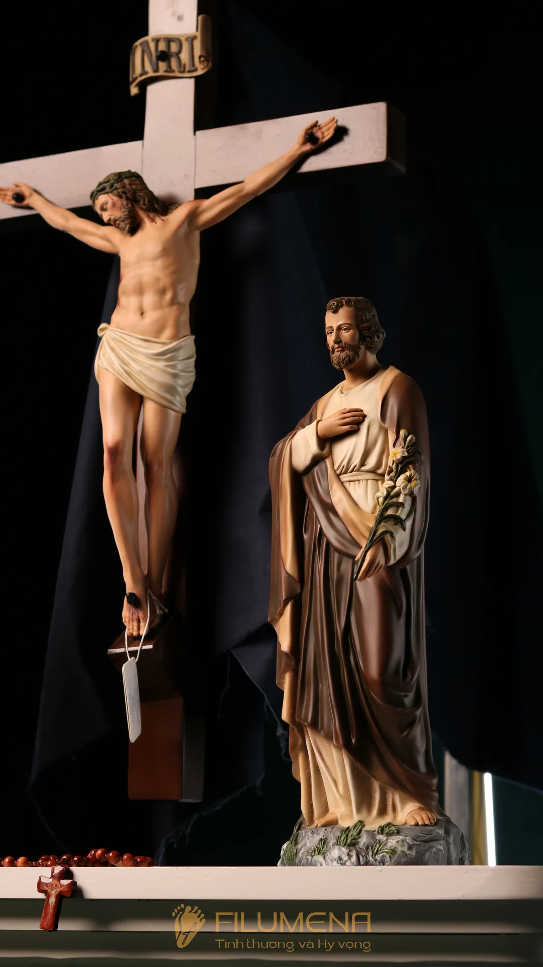 Bộ màu phù hợp : Filumena phối sẵn bộ tượng Chúa, Đức Mẹ, Thánh Giuse theo màu sắc hài hòa, thiết kế riêng cho phù hợp các không gian hiện đại hay cổ điển, giúp việc sắp đặt bàn thờ chuẩn và thuận tiện.
