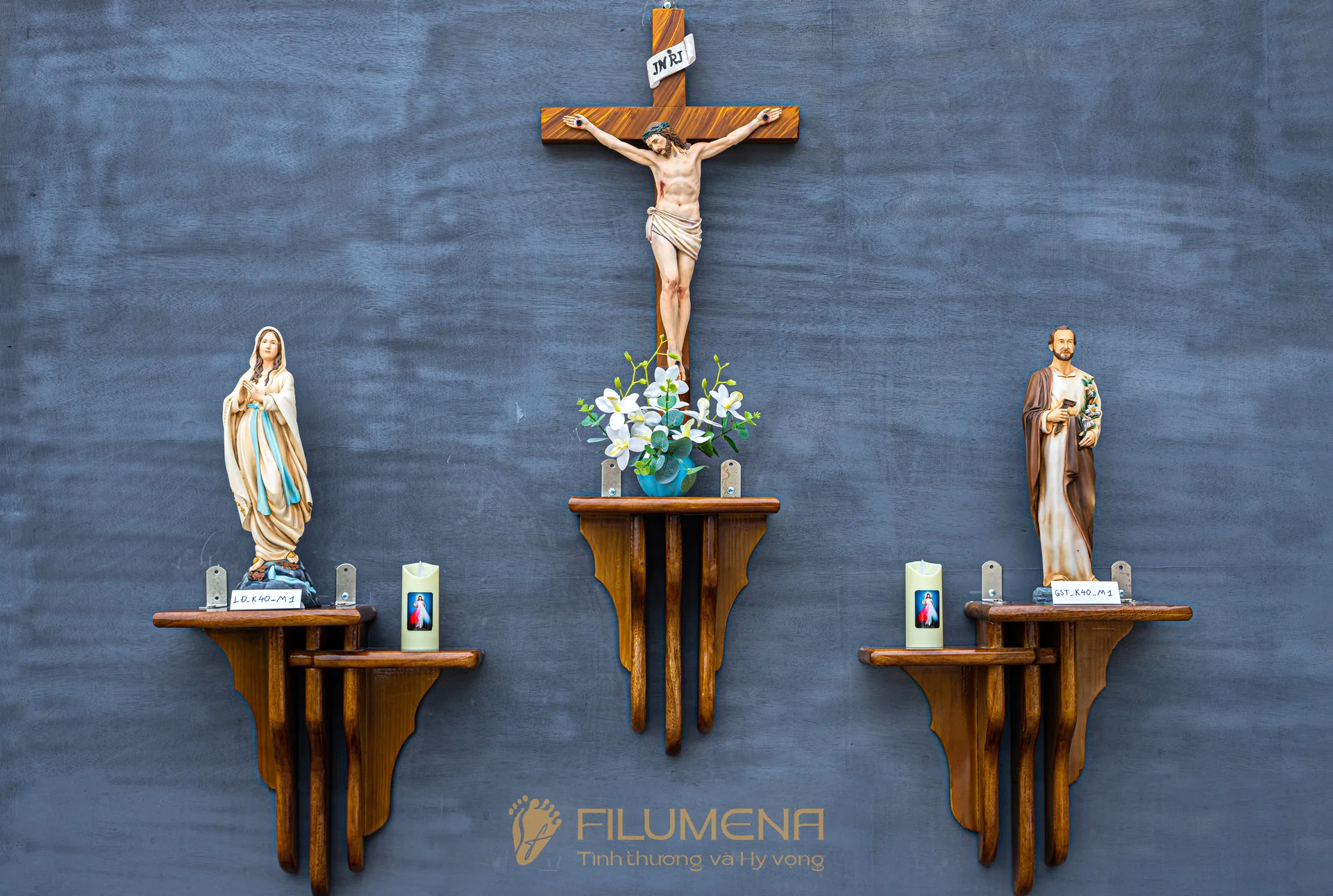 Bàn thờ Chúa BTC1 - Bộ 3 tượng cao 40 cm màu M1 & bệ thờ BT1
