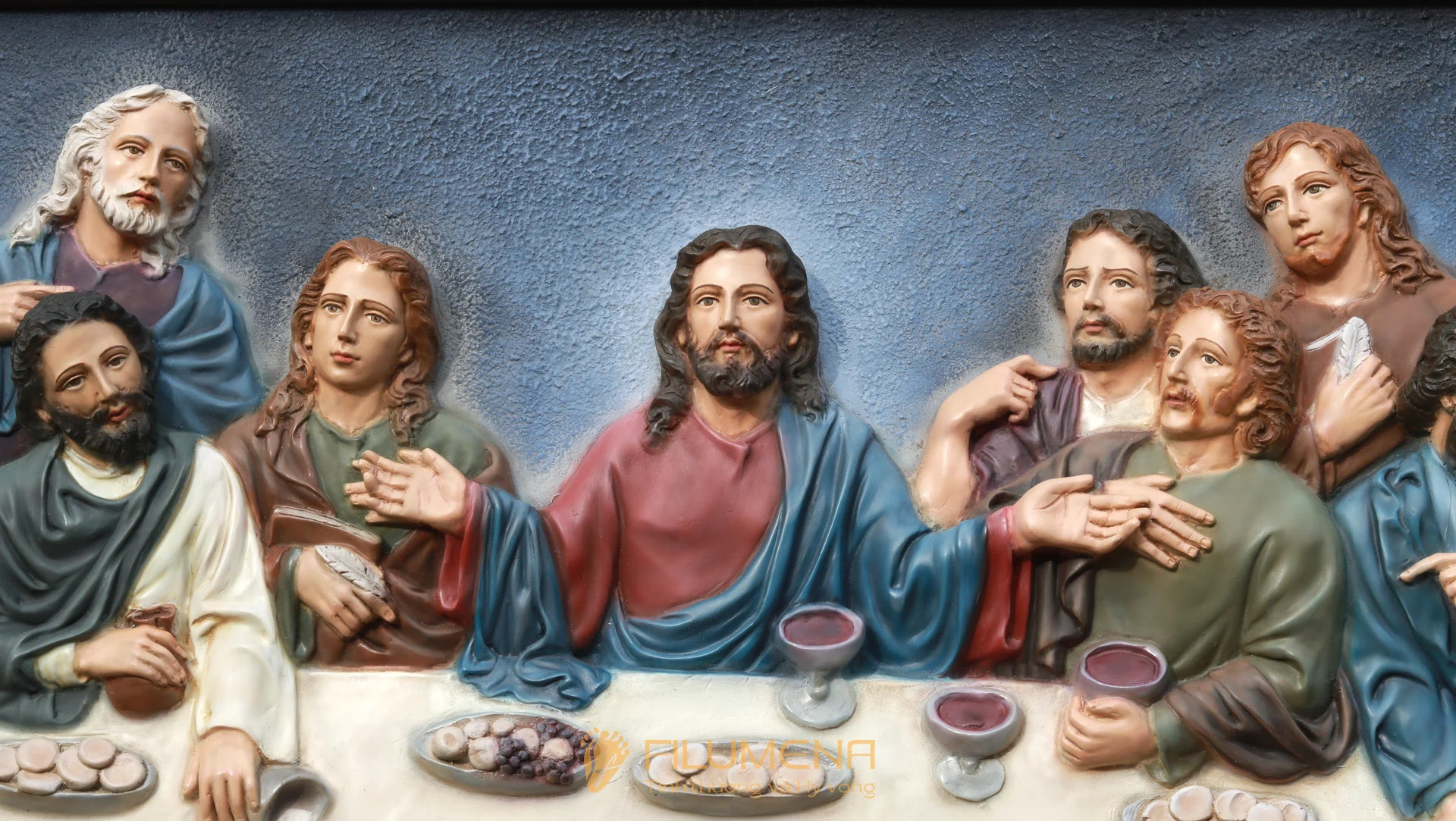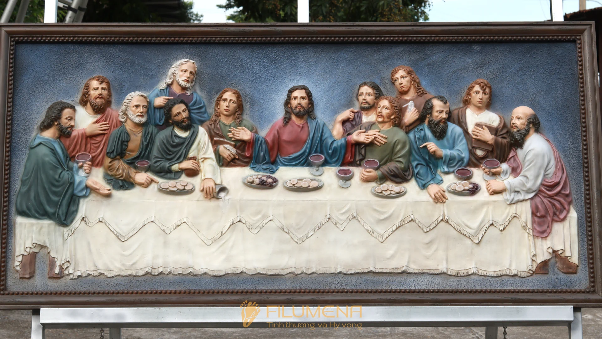 Phù điêu Bữa Tiệc Ly 150 x 75 cm là tác phẩm treo tường mang chiều sâu phụng vụ, tái hiện khoảnh khắc Chúa Giêsu lập Bí tích Thánh Thể và Giao ước Mới với các Tông đồ. Bố cục nằm ngang 1,5 m cho phép từng nhân vật được khắc họa rõ nét, nhưng vẫn quy tụ ánh nhìn về Chúa Giêsu ở trung tâm.