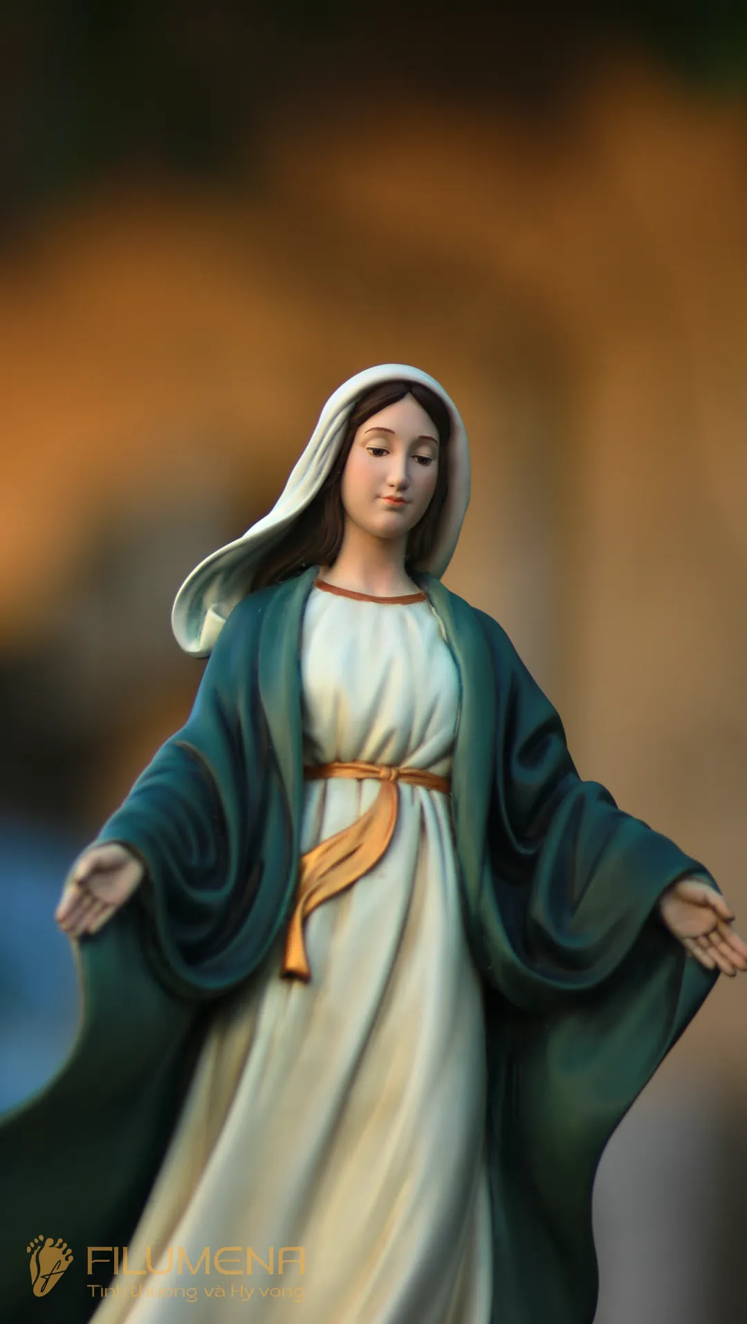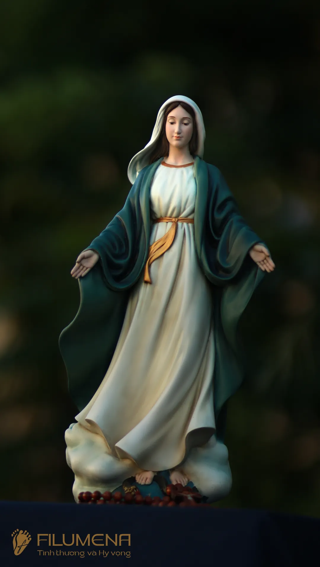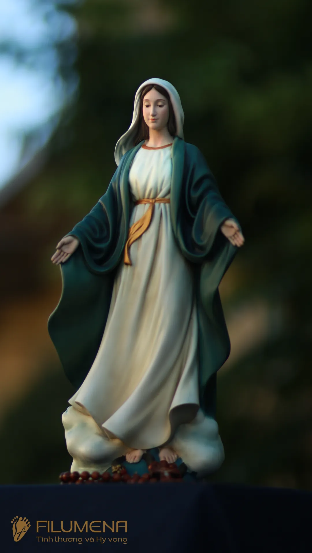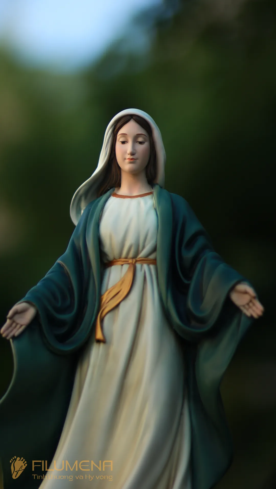 Tượng Đức Mẹ Ban Ơn. Mẫu tượng Đức Mẹ cao 30 cm, 40 cm để phù hợp cho bàn thờ Chúa phòng khách. Mẫu tượng được sáng tác bởi các nghệ sỹ điêu khắc tại tượng Công giáo Filumena.