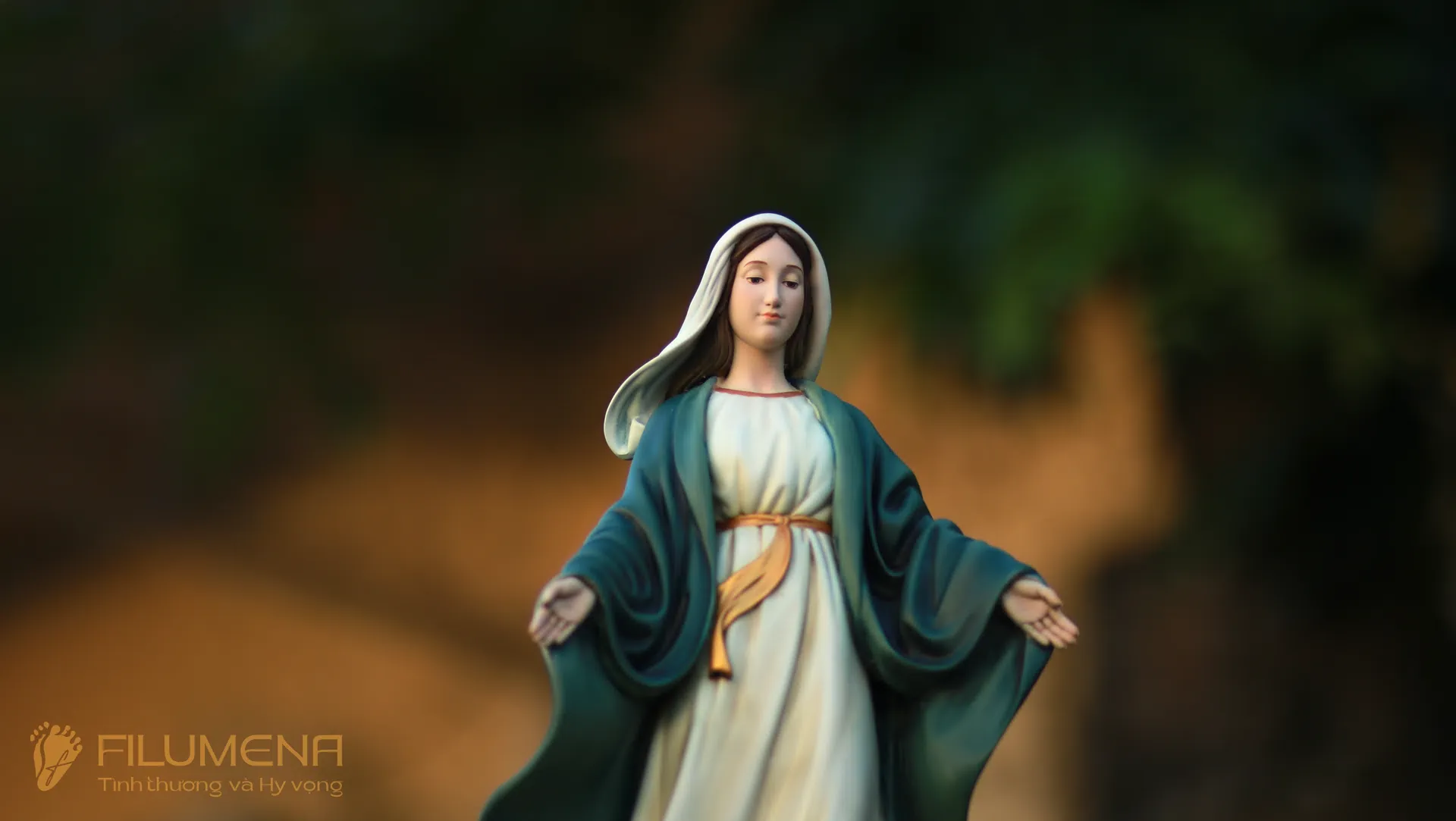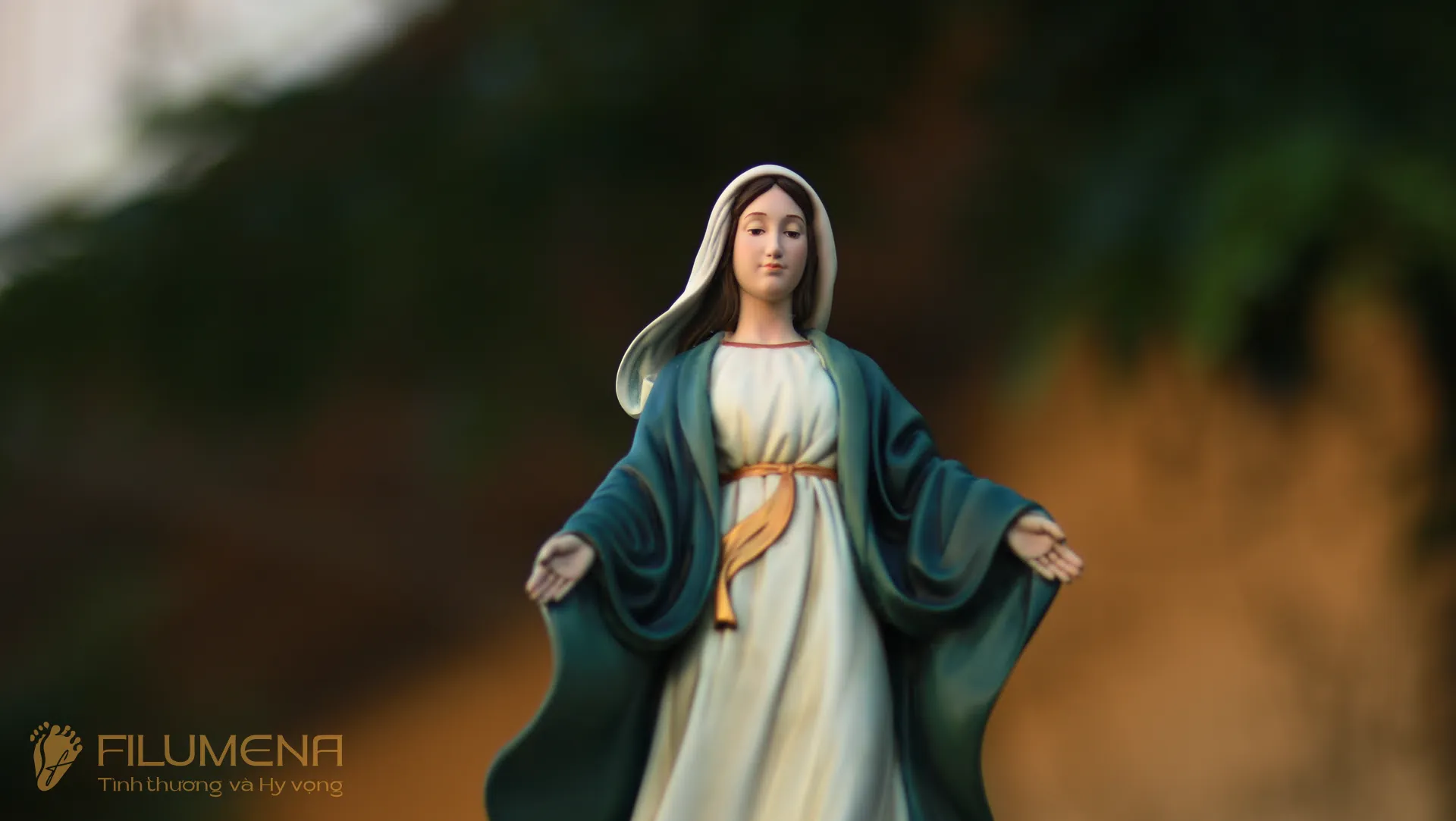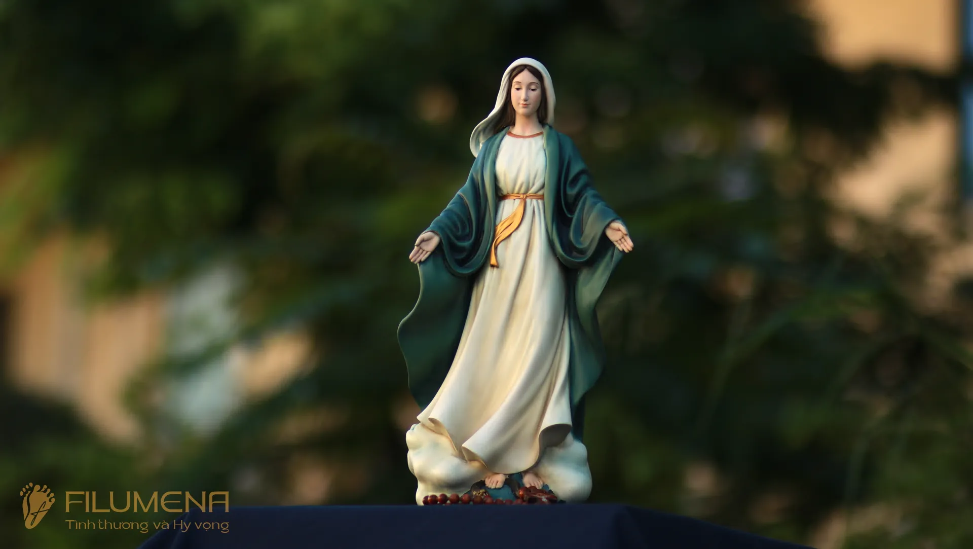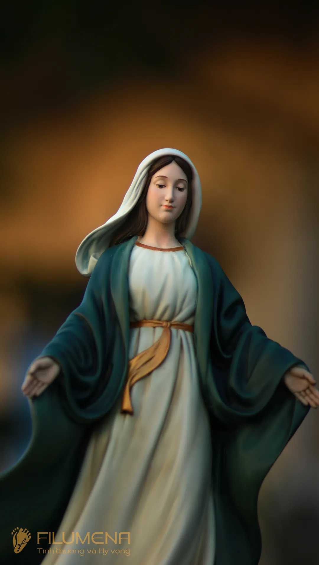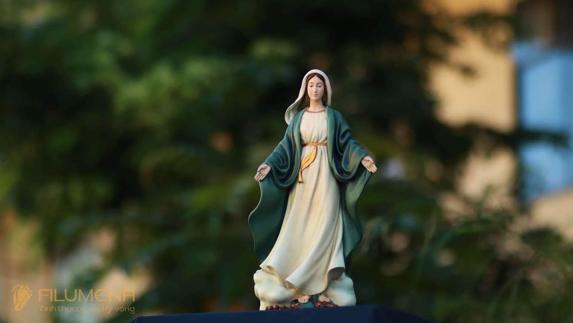 Tượng Đức Mẹ Ban Ơn. Mẫu tượng Đức Mẹ cao 30 cm, 40 cm để phù hợp cho bàn thờ Chúa phòng khách. Mẫu tượng được sáng tác bởi các nghệ sỹ điêu khắc tại tượng Công giáo Filumena.