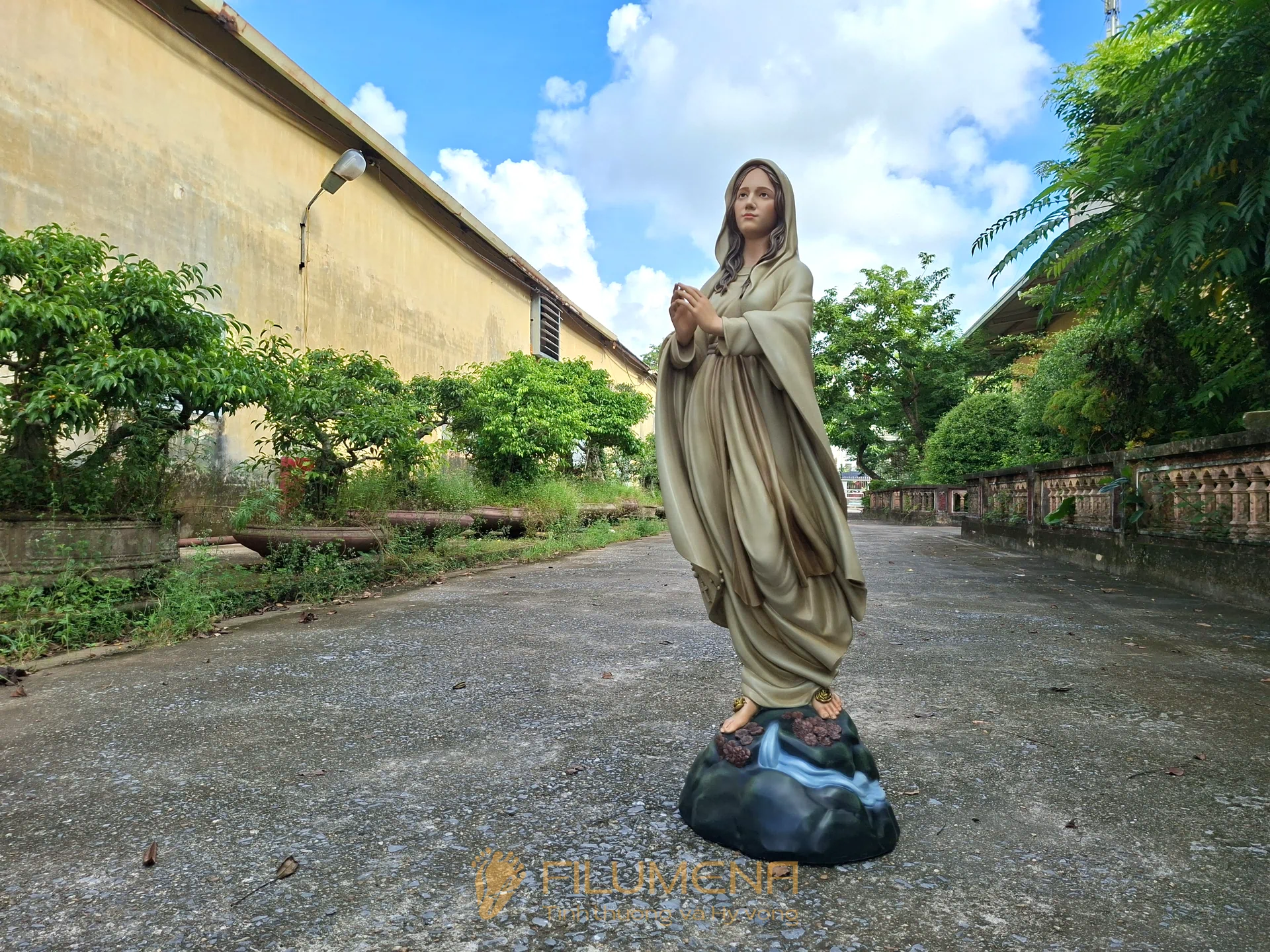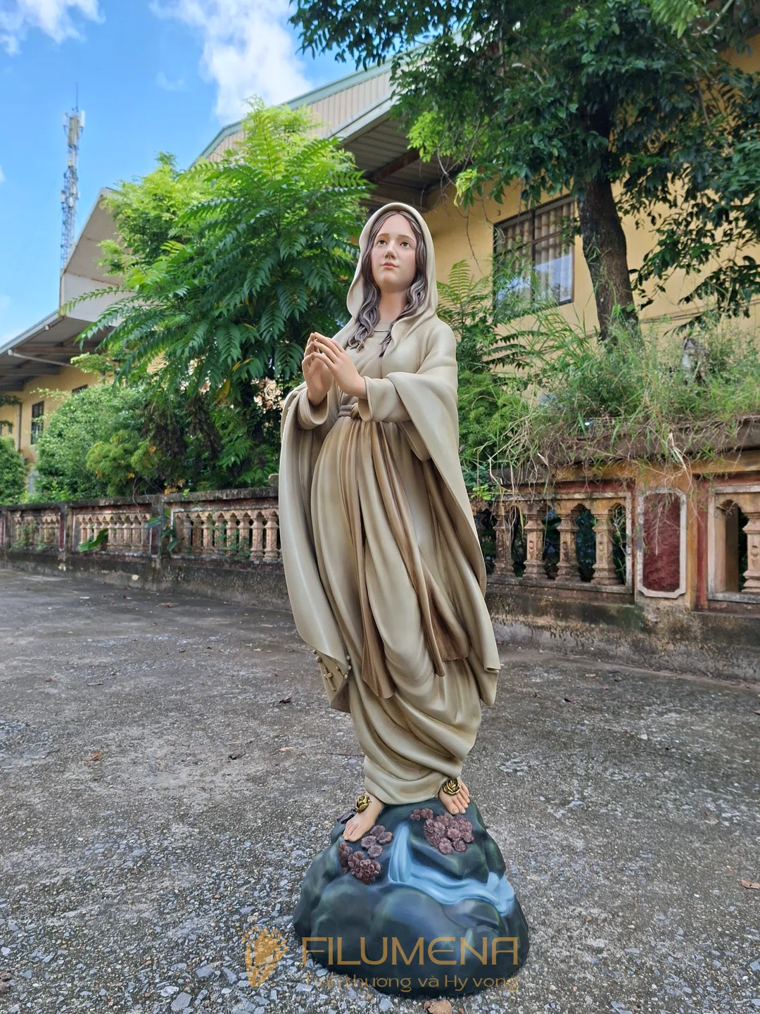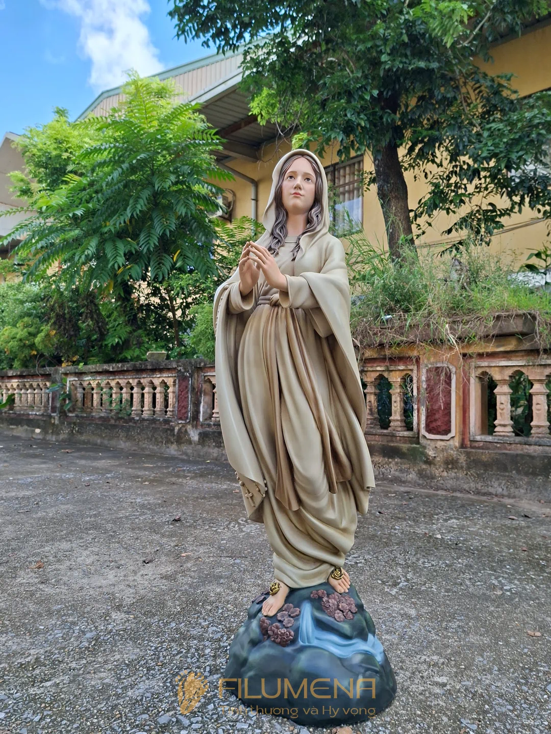 Tác phẩm tượng Đức Mẹ Lộ Đức do Filumena sáng tác năm 2022, đảm bảo lẽ công bằng cần phải có của một tác phẩm tượng thờ Công giáo.