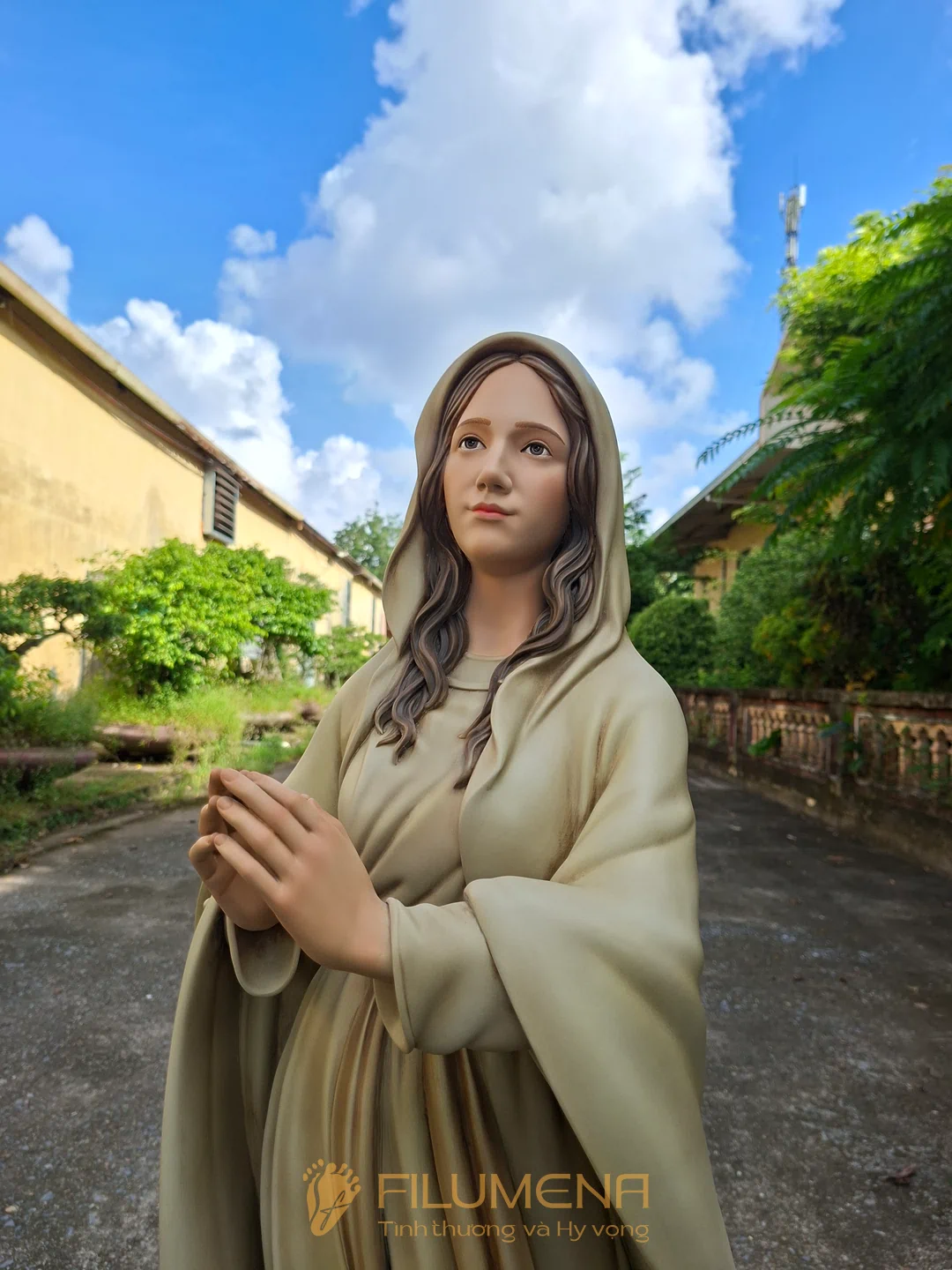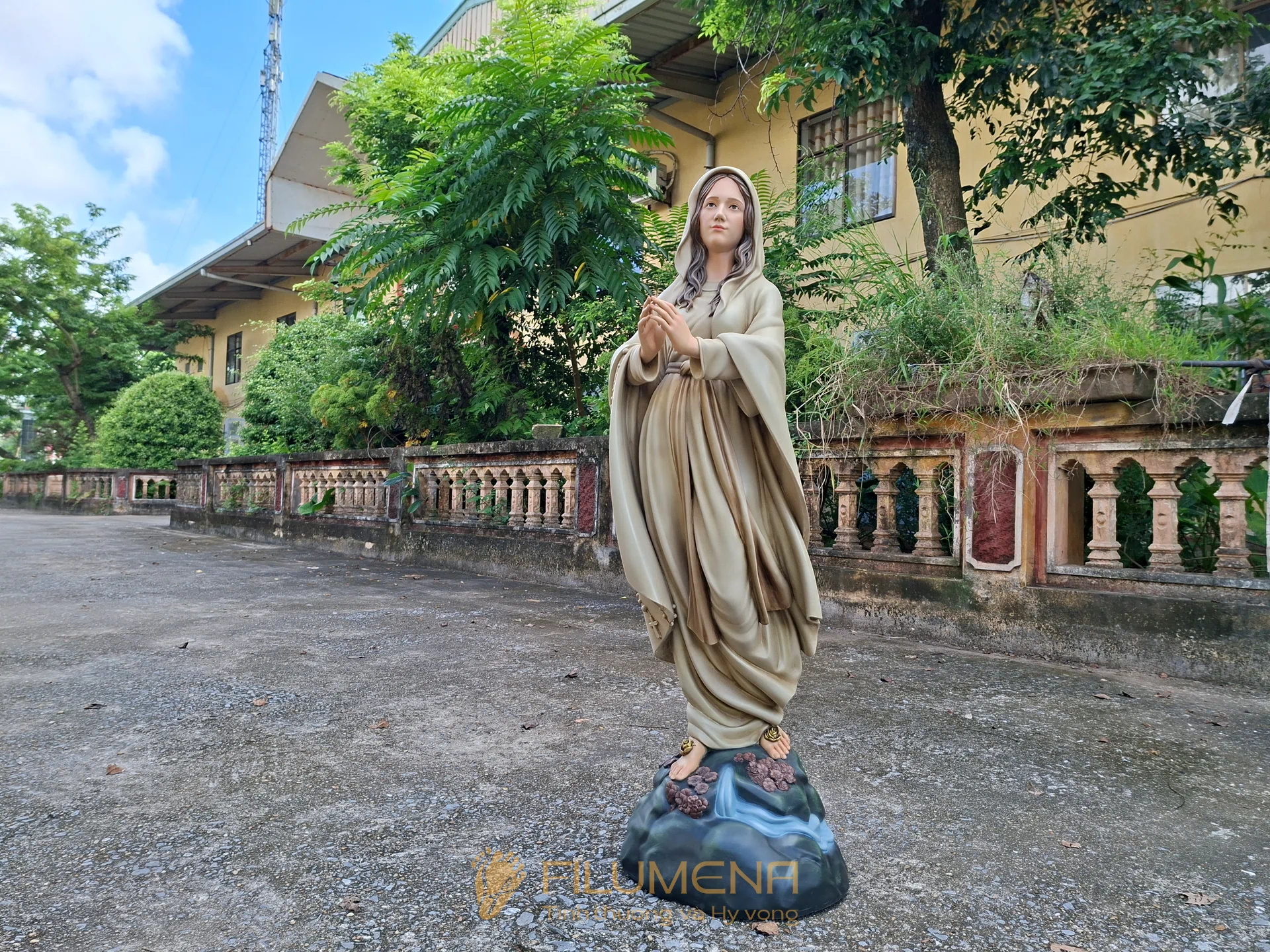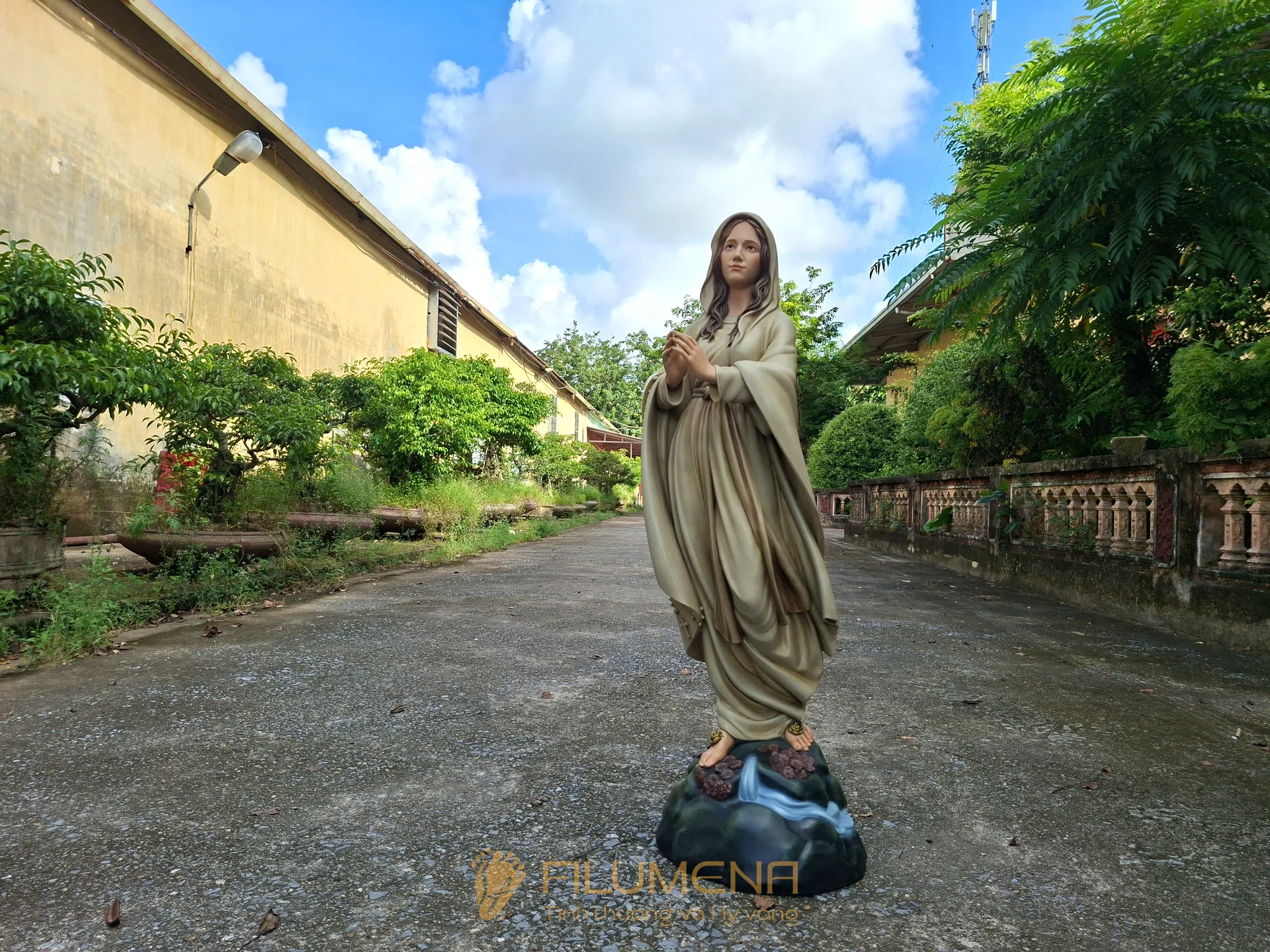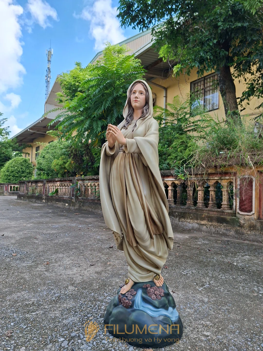 Tác phẩm tượng Đức Mẹ Lộ Đức do Filumena sáng tác năm 2022, đảm bảo lẽ công bằng cần phải có của một tác phẩm tượng thờ Công giáo.