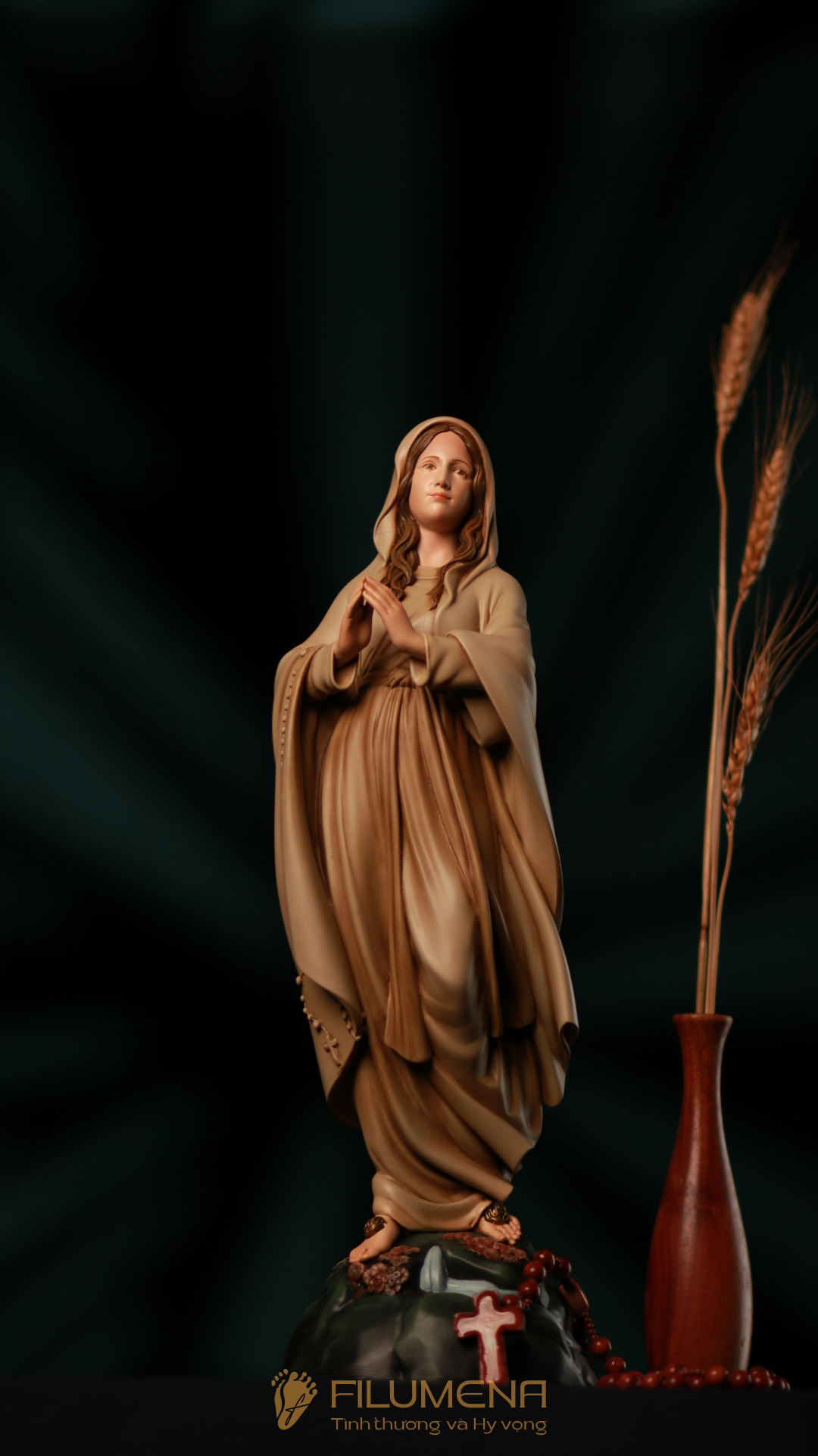Tác phẩm tượng Đức Mẹ Lộ Đức do Filumena sáng tác năm 2022, đảm bảo lẽ công bằng cần phải có của một tác phẩm tượng thờ Công giáo.