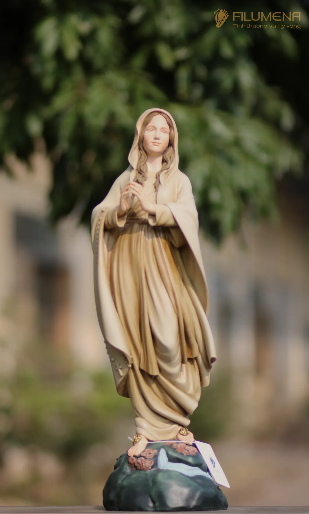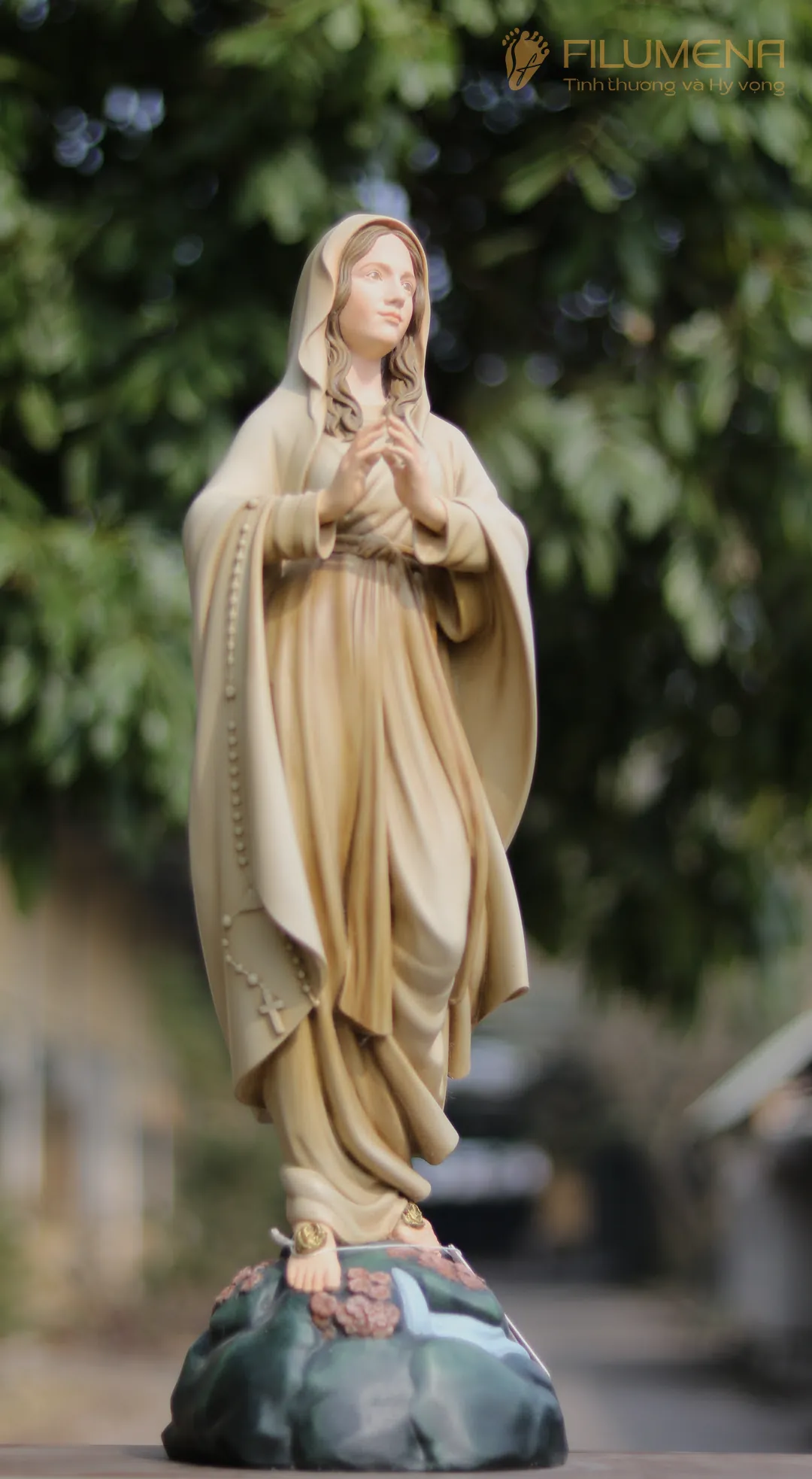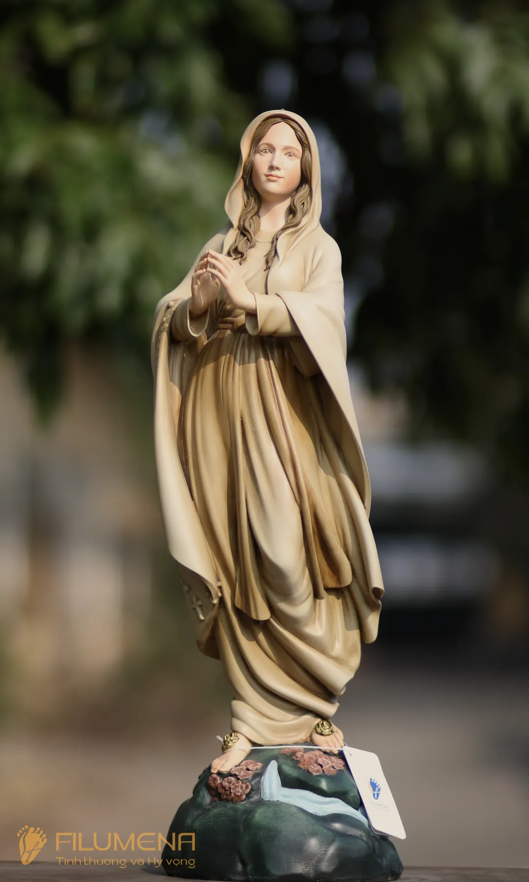 Tác phẩm tượng Đức Mẹ Lộ Đức do Filumena sáng tác năm 2022, đảm bảo lẽ công bằng cần phải có của một tác phẩm tượng thờ Công giáo.