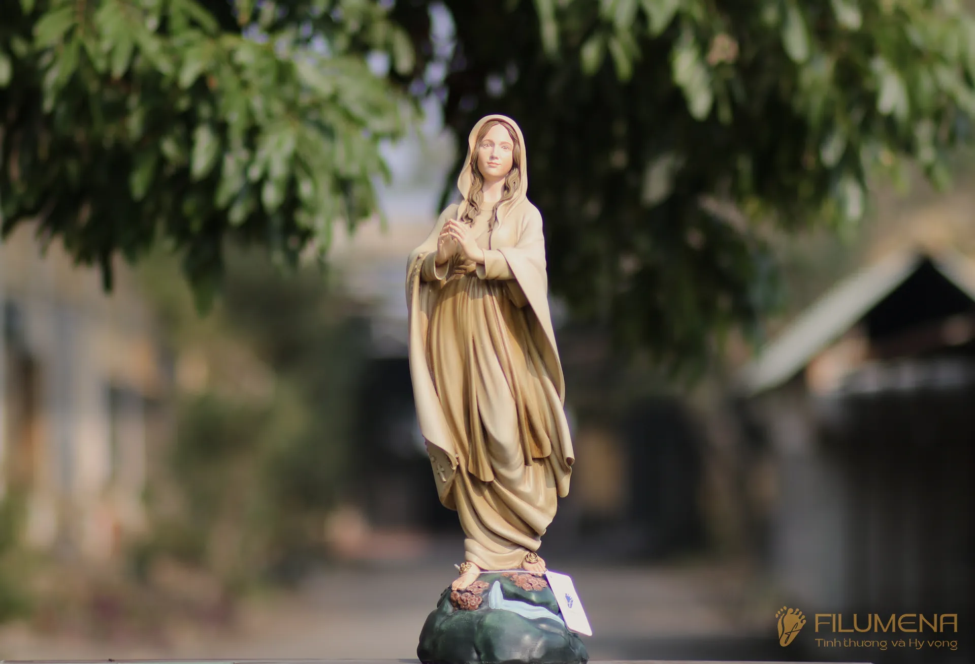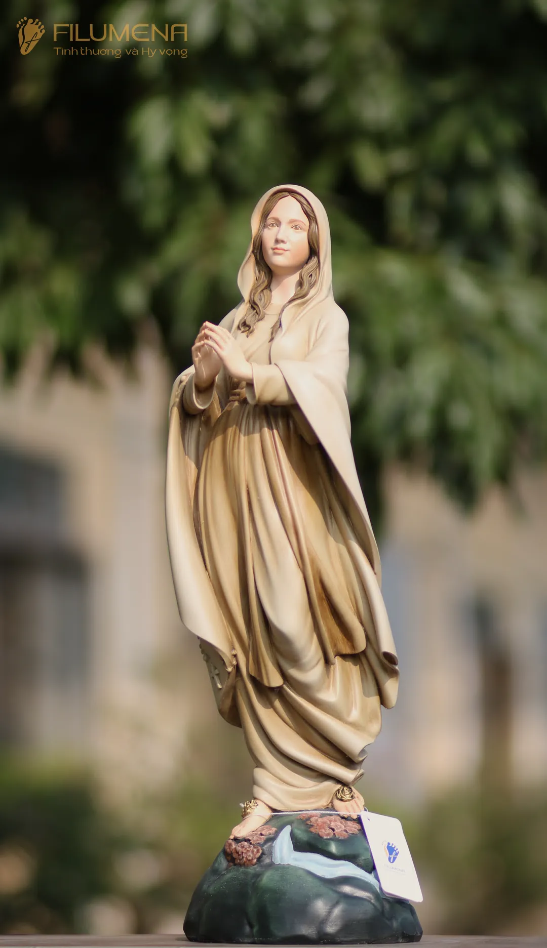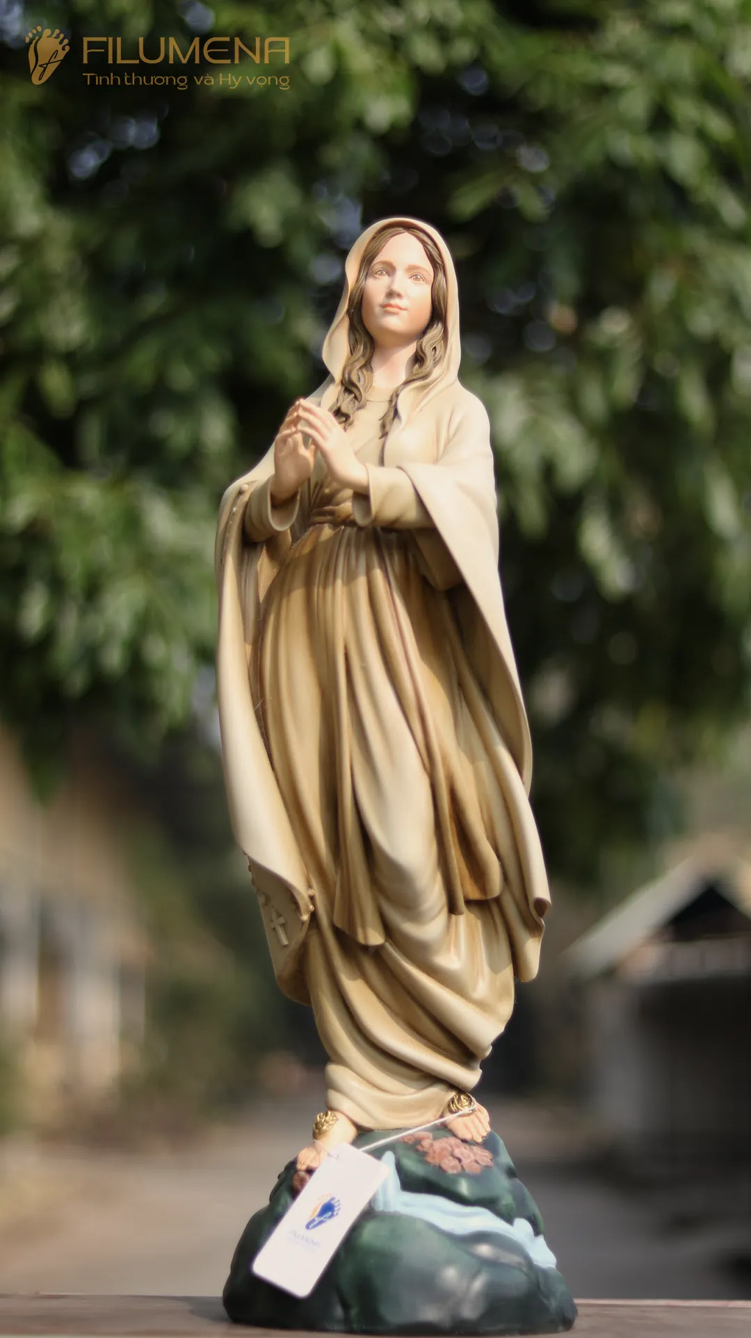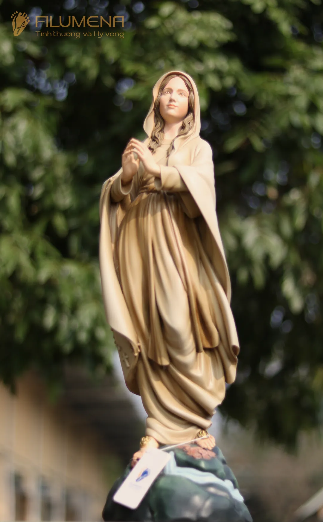 Tác phẩm tượng Đức Mẹ Lộ Đức do Filumena sáng tác năm 2022, đảm bảo lẽ công bằng cần phải có của một tác phẩm tượng thờ Công giáo.