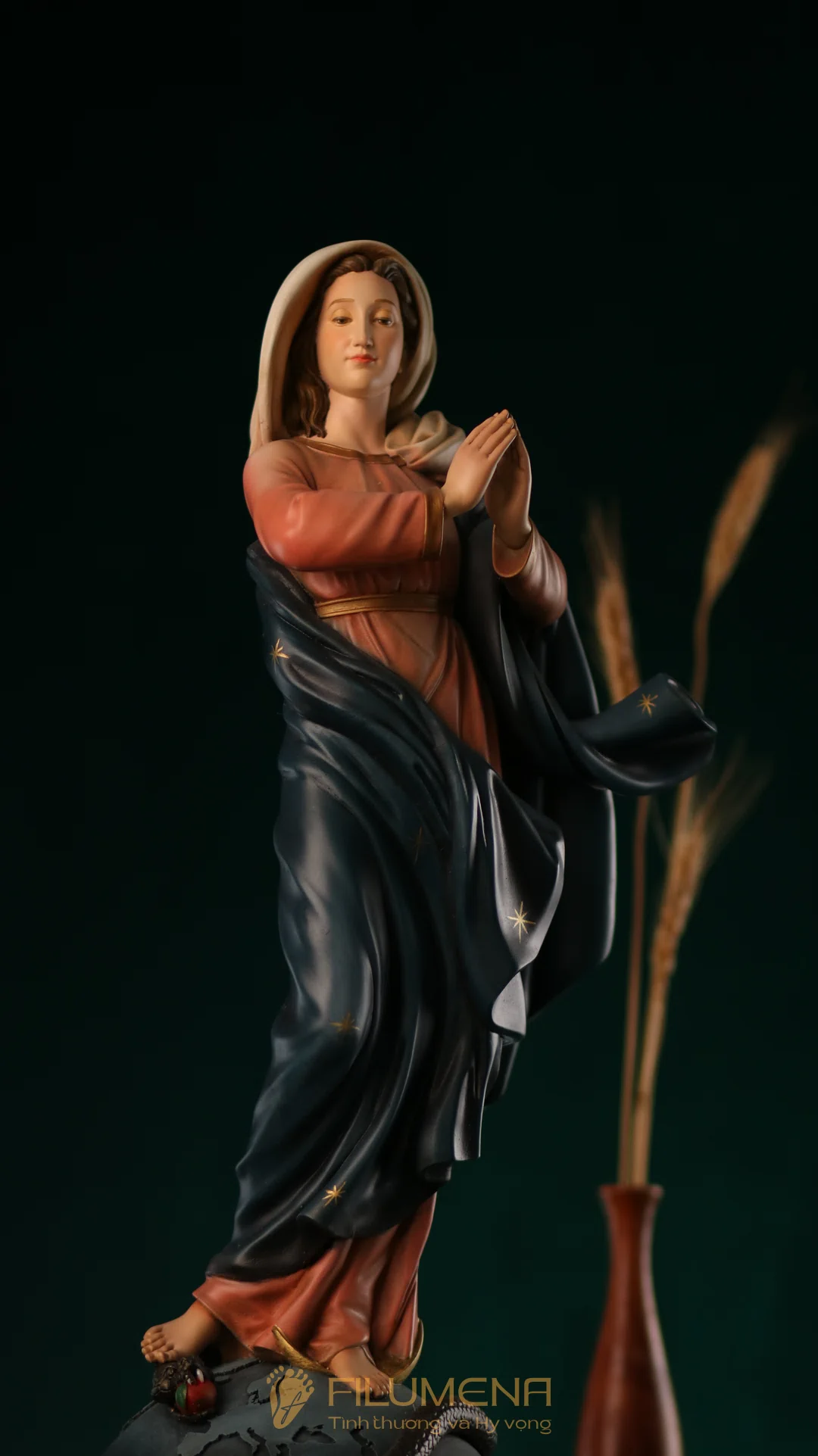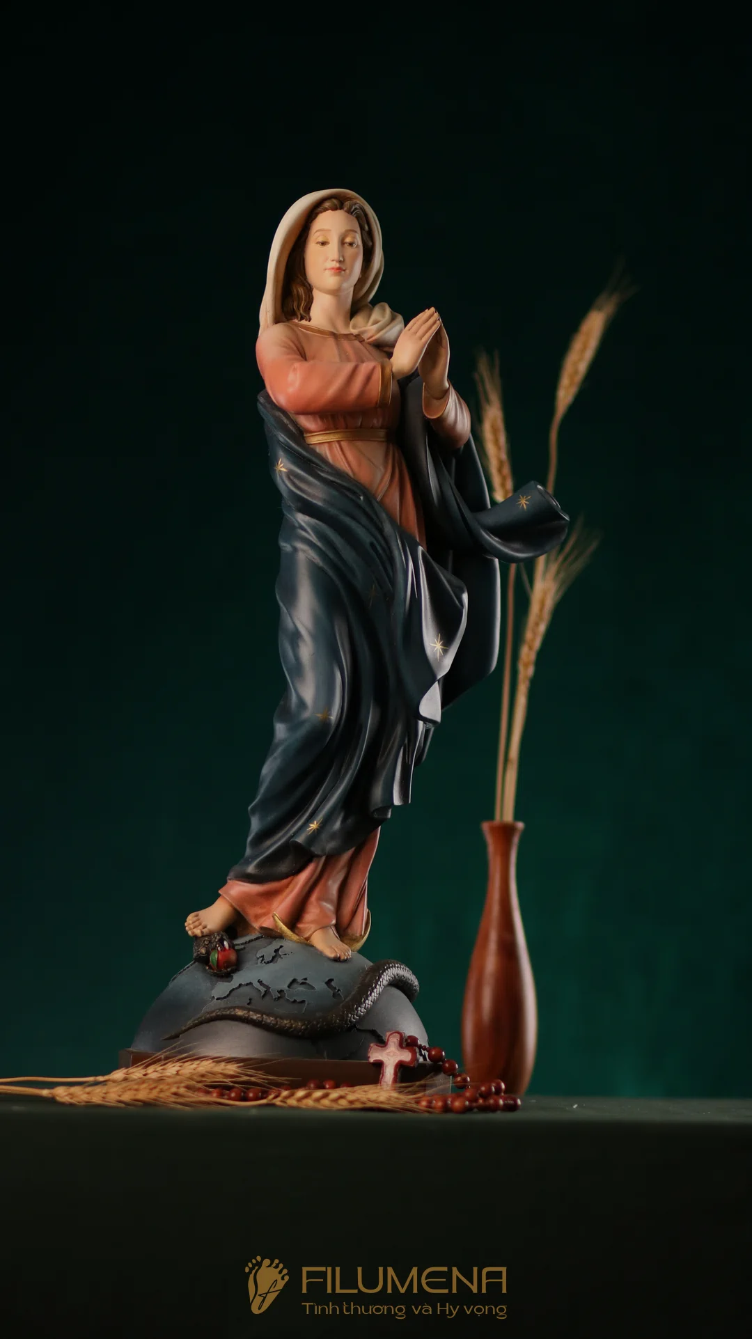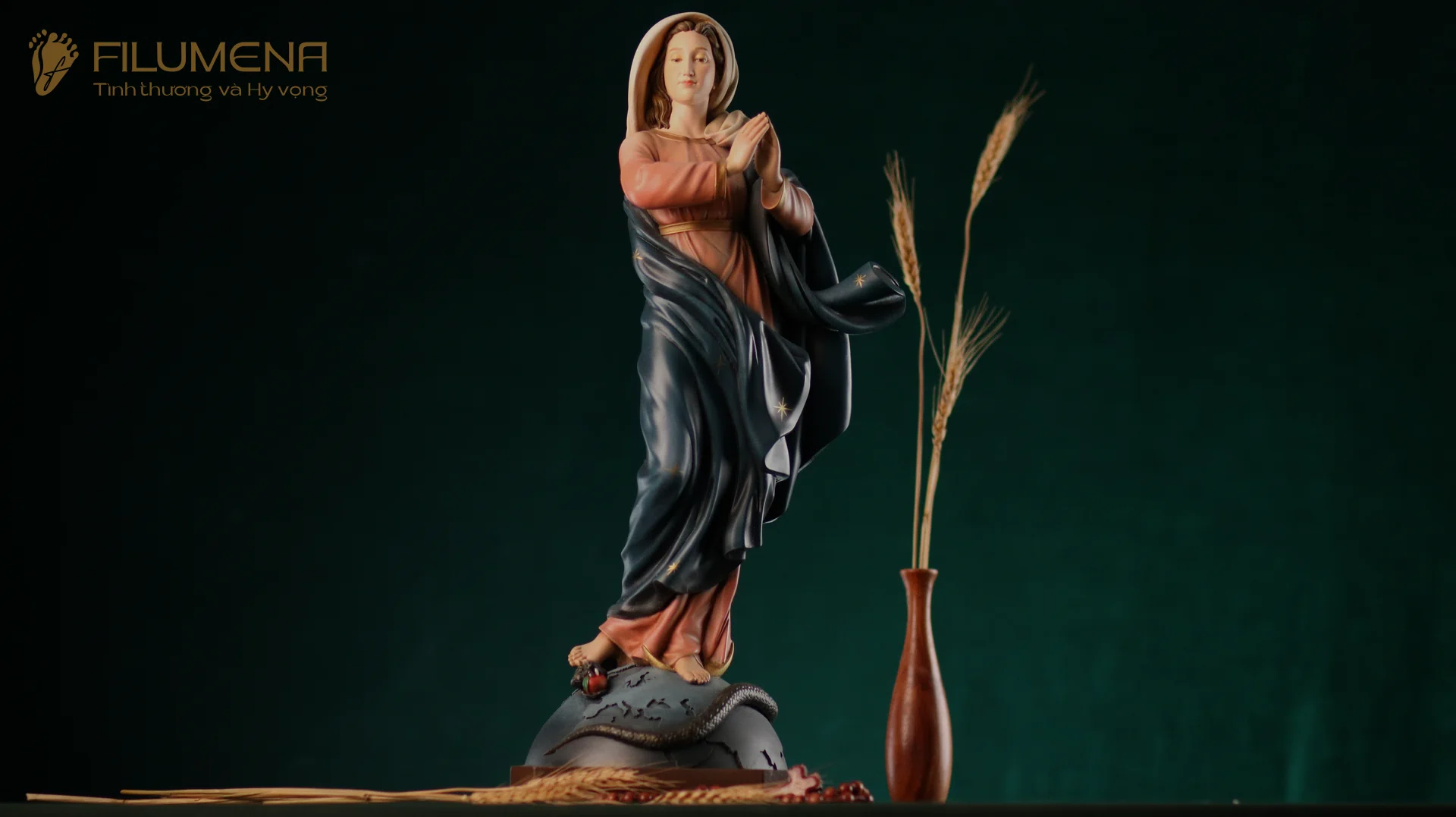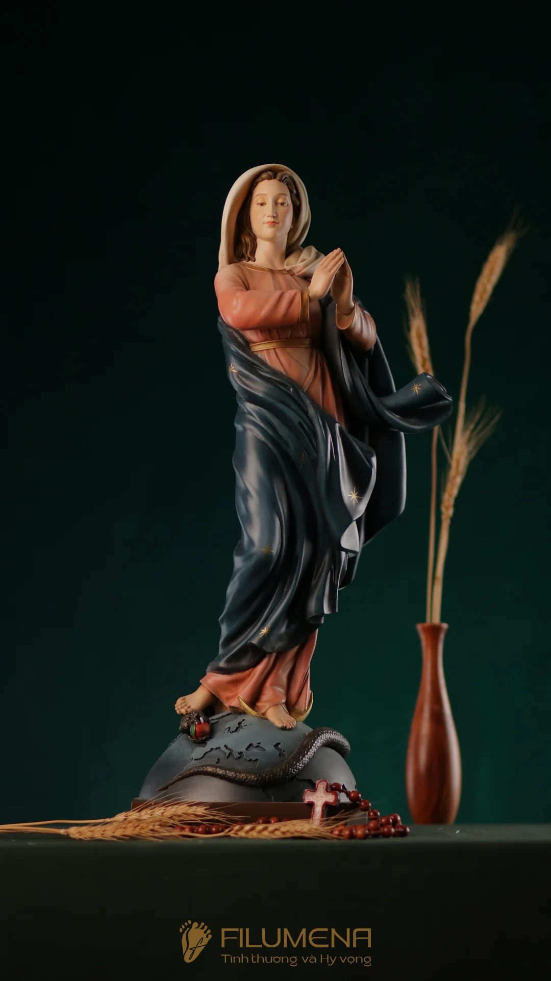 Tác phẩm tượng Mẹ Vô Nhiễm Nguyên Tội này là một phần của bộ 3 tượng bàn thờ Công giáo của Filumena. Tượng Mẹ cũng có thể được đặt riêng trong góc cầu nguyện của quý vị.