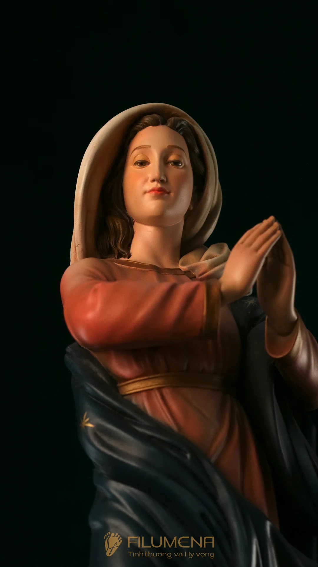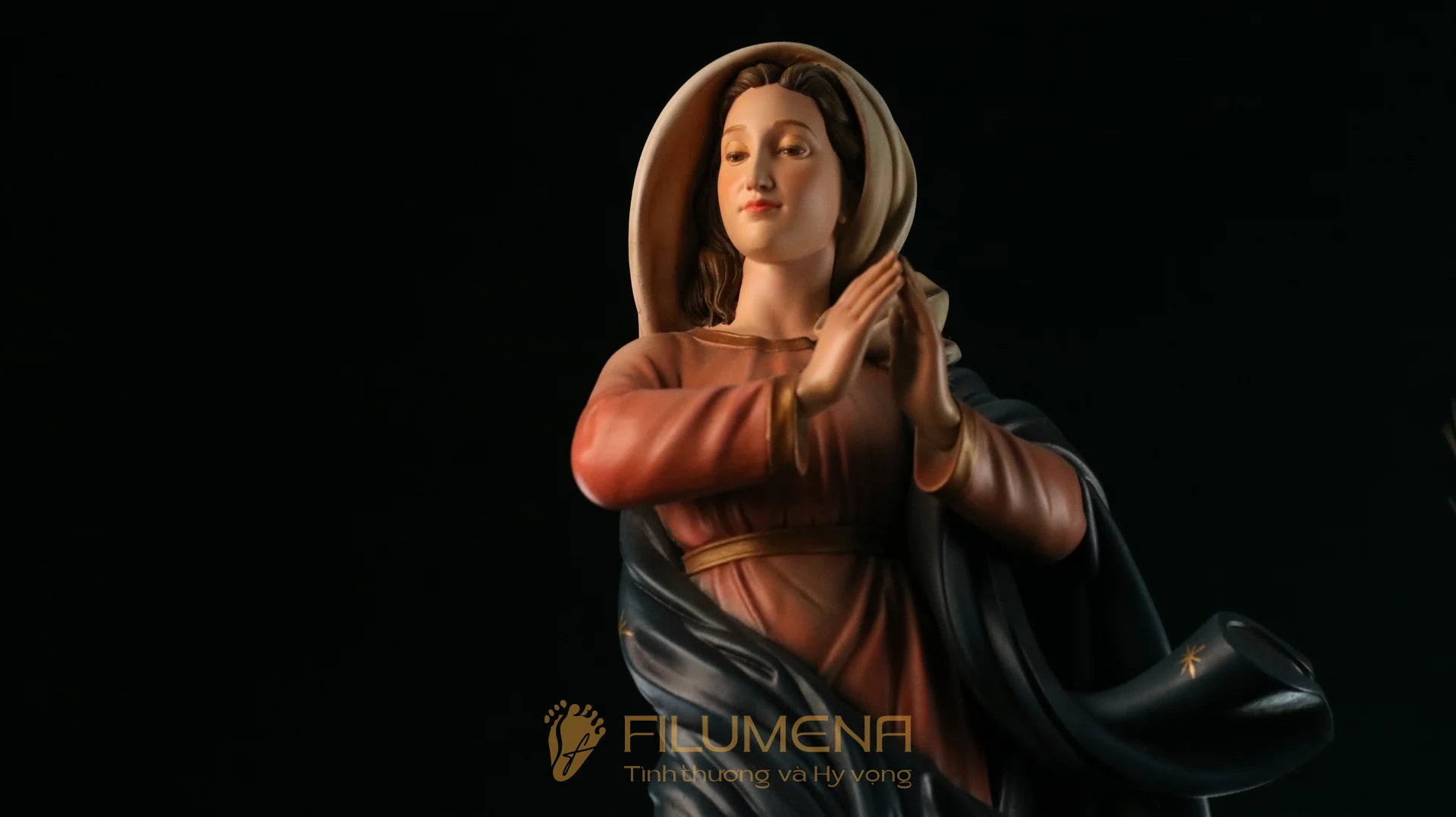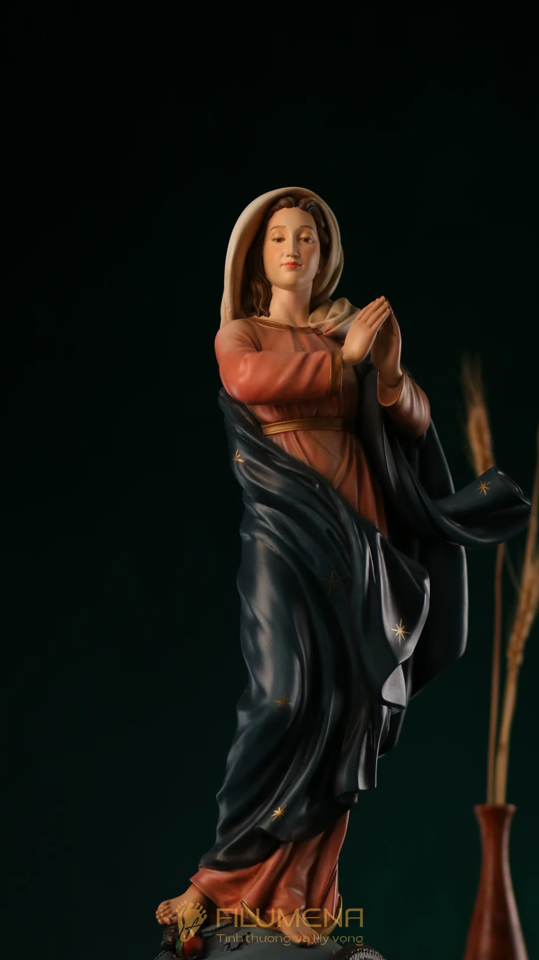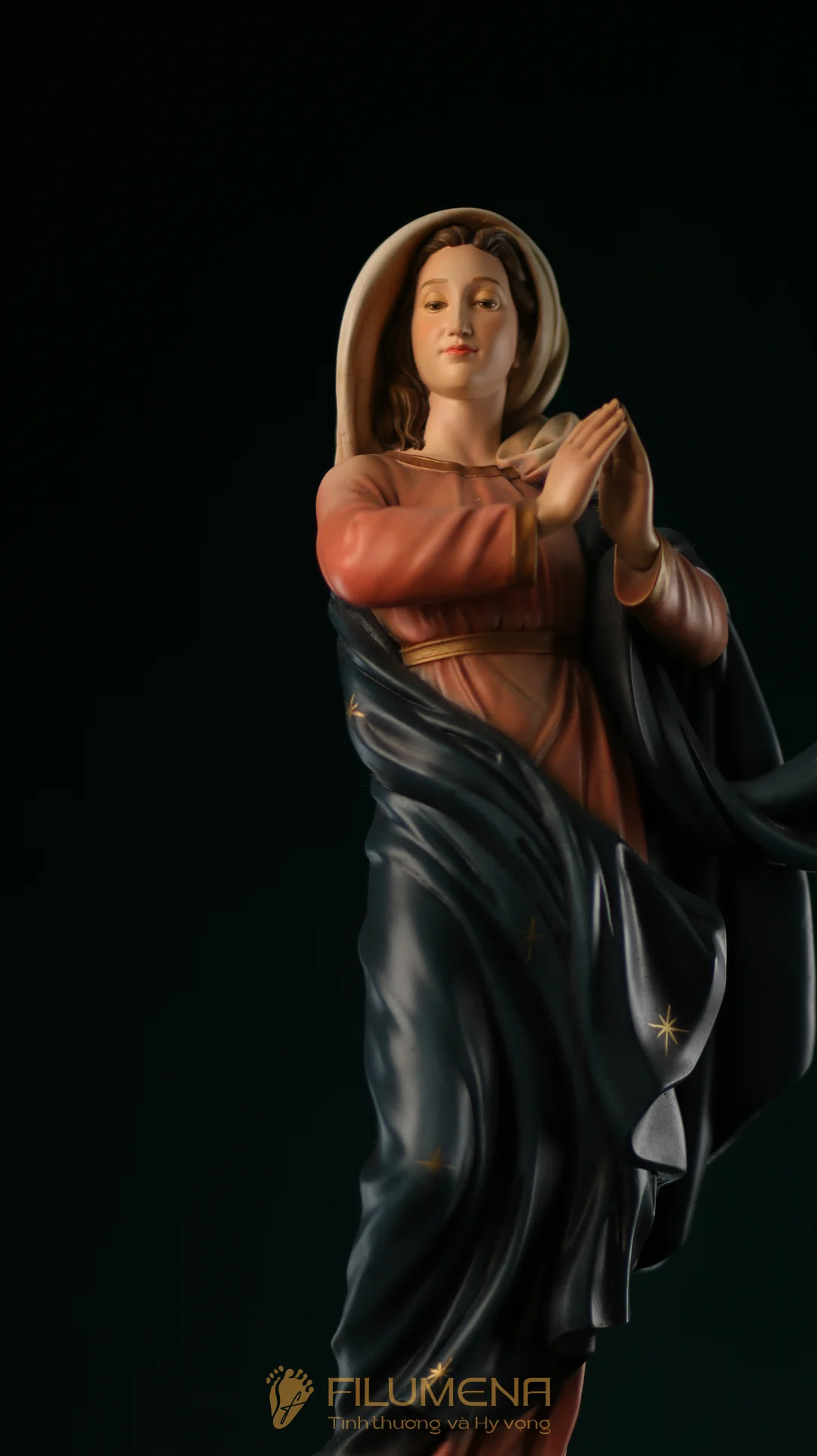 Tác phẩm tượng Mẹ Vô Nhiễm Nguyên Tội này là một phần của bộ 3 tượng bàn thờ Công giáo của Filumena. Tượng Mẹ cũng có thể được đặt riêng trong góc cầu nguyện của quý vị.