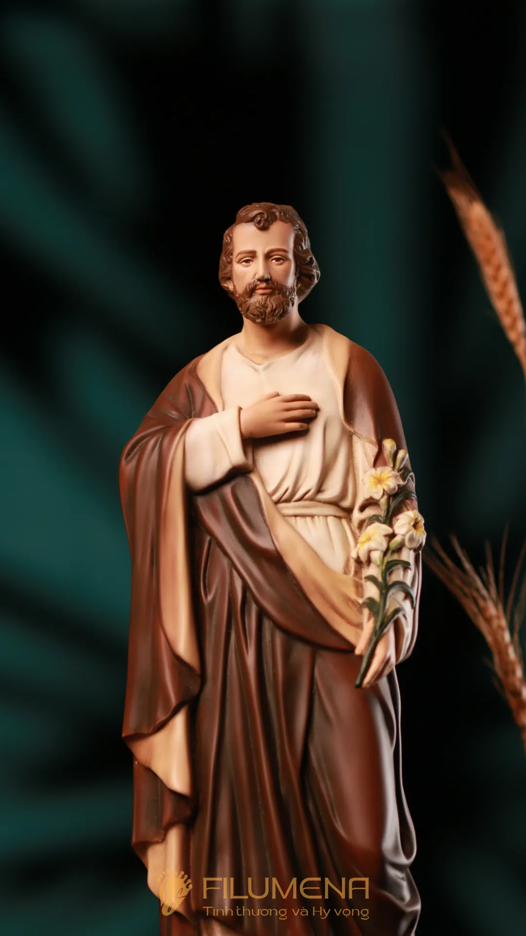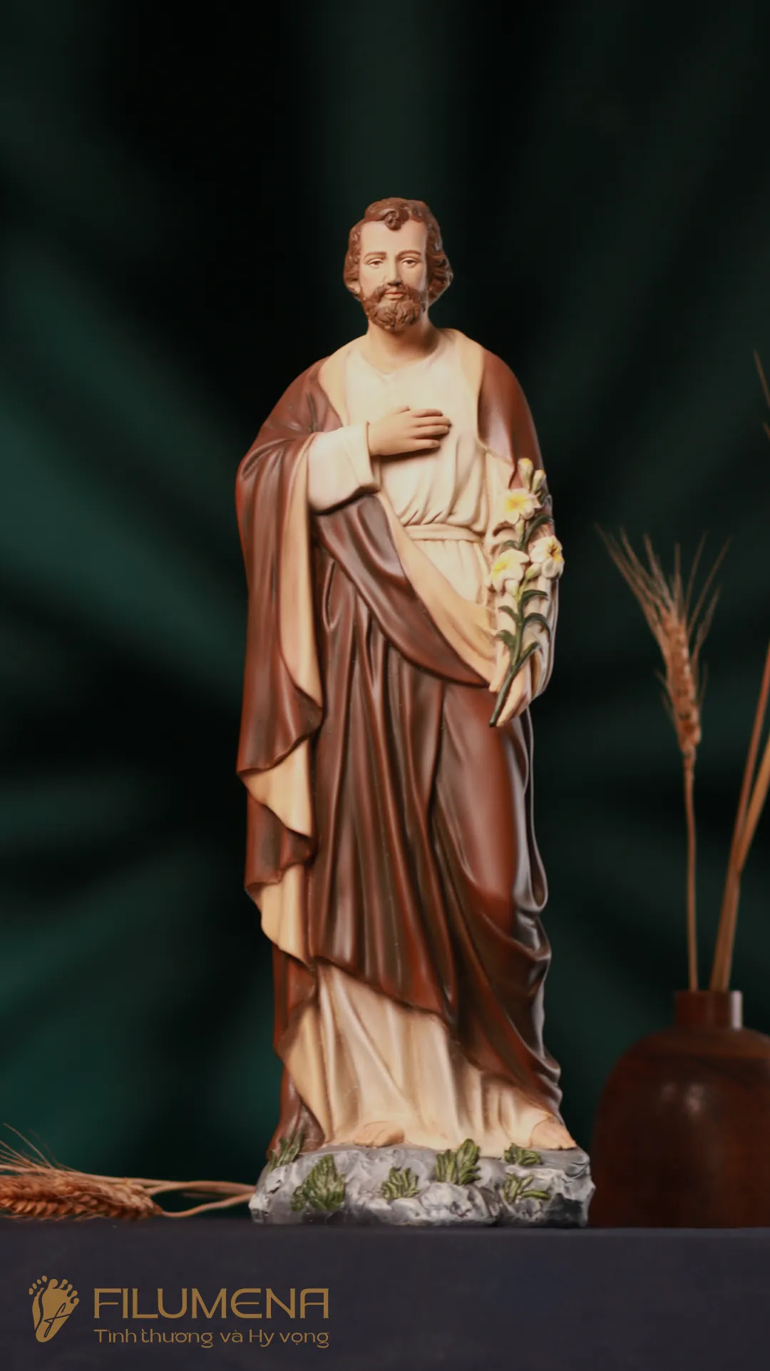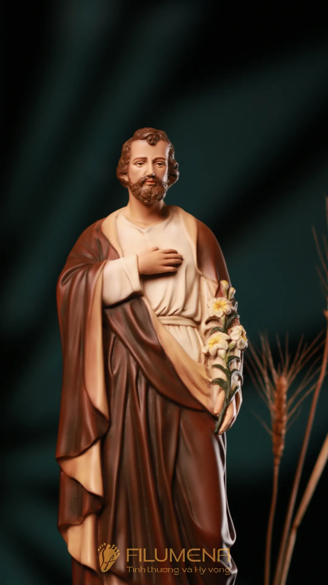 Tượng Thánh Giuse Hoa Huệ 30 cm, 40 cm màu nâu M1
