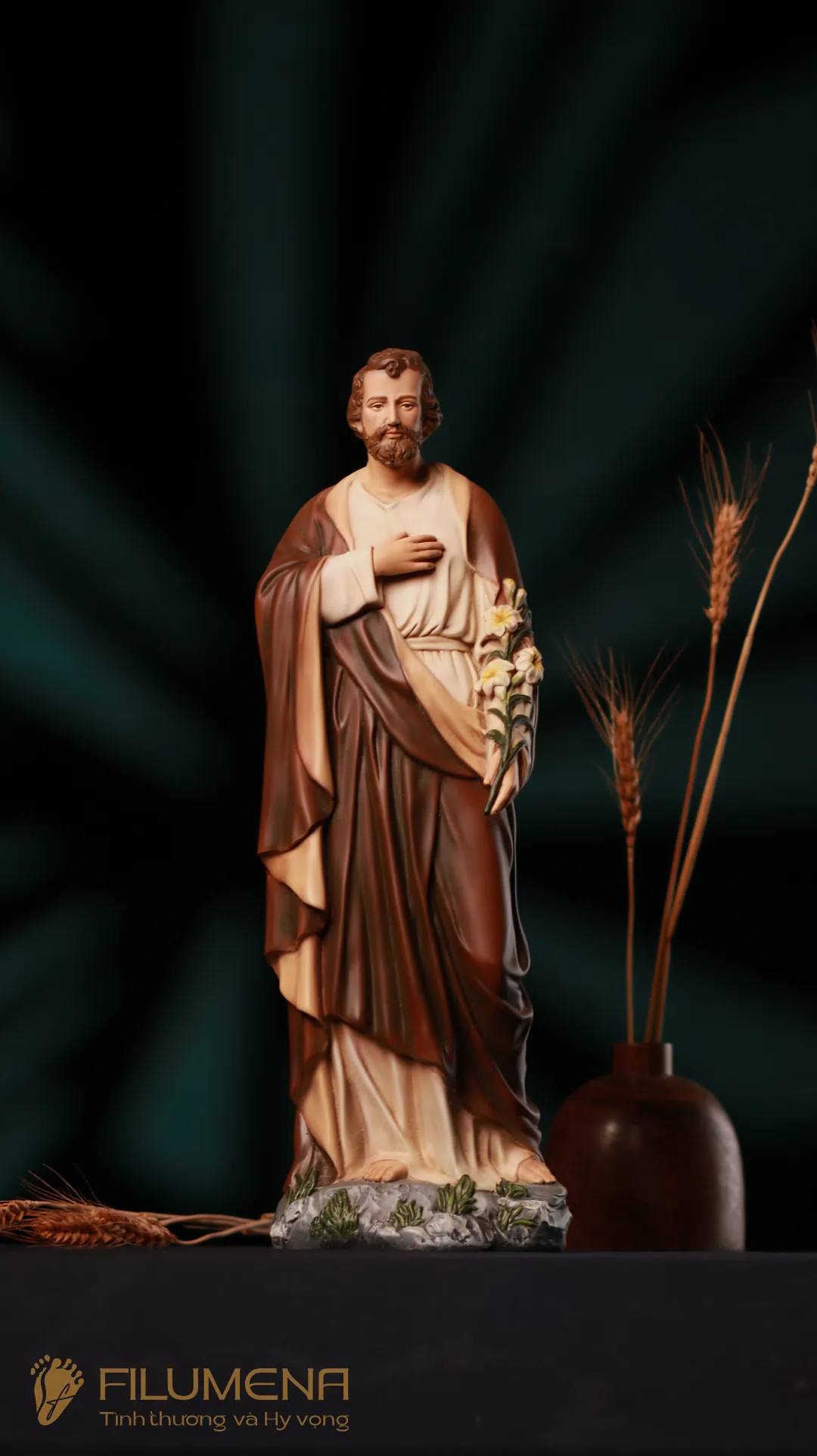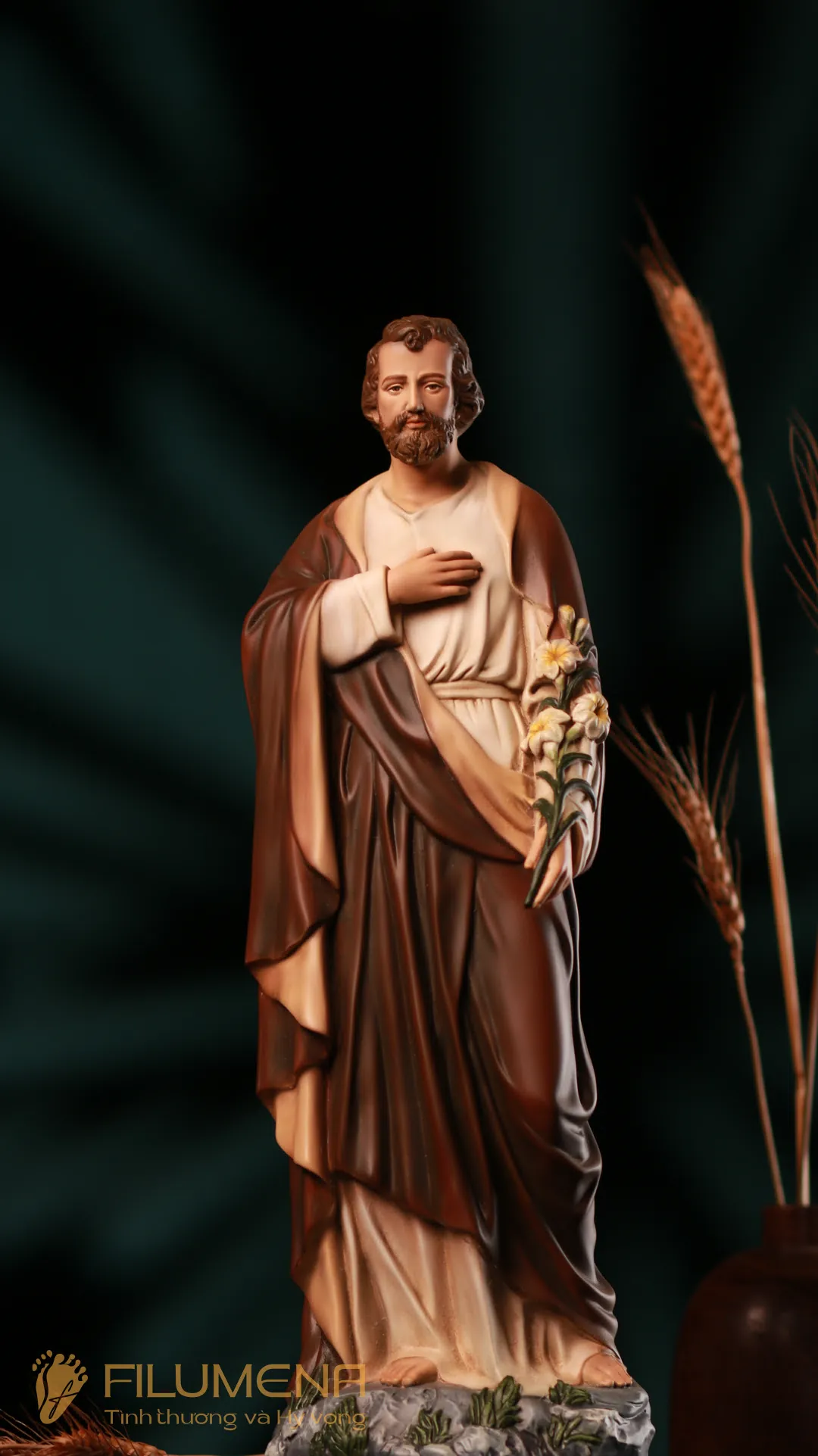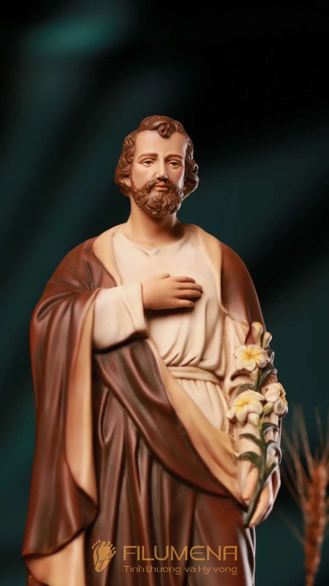 Tượng Thánh Giuse Hoa Huệ 30 cm, 40 cm màu nâu M1