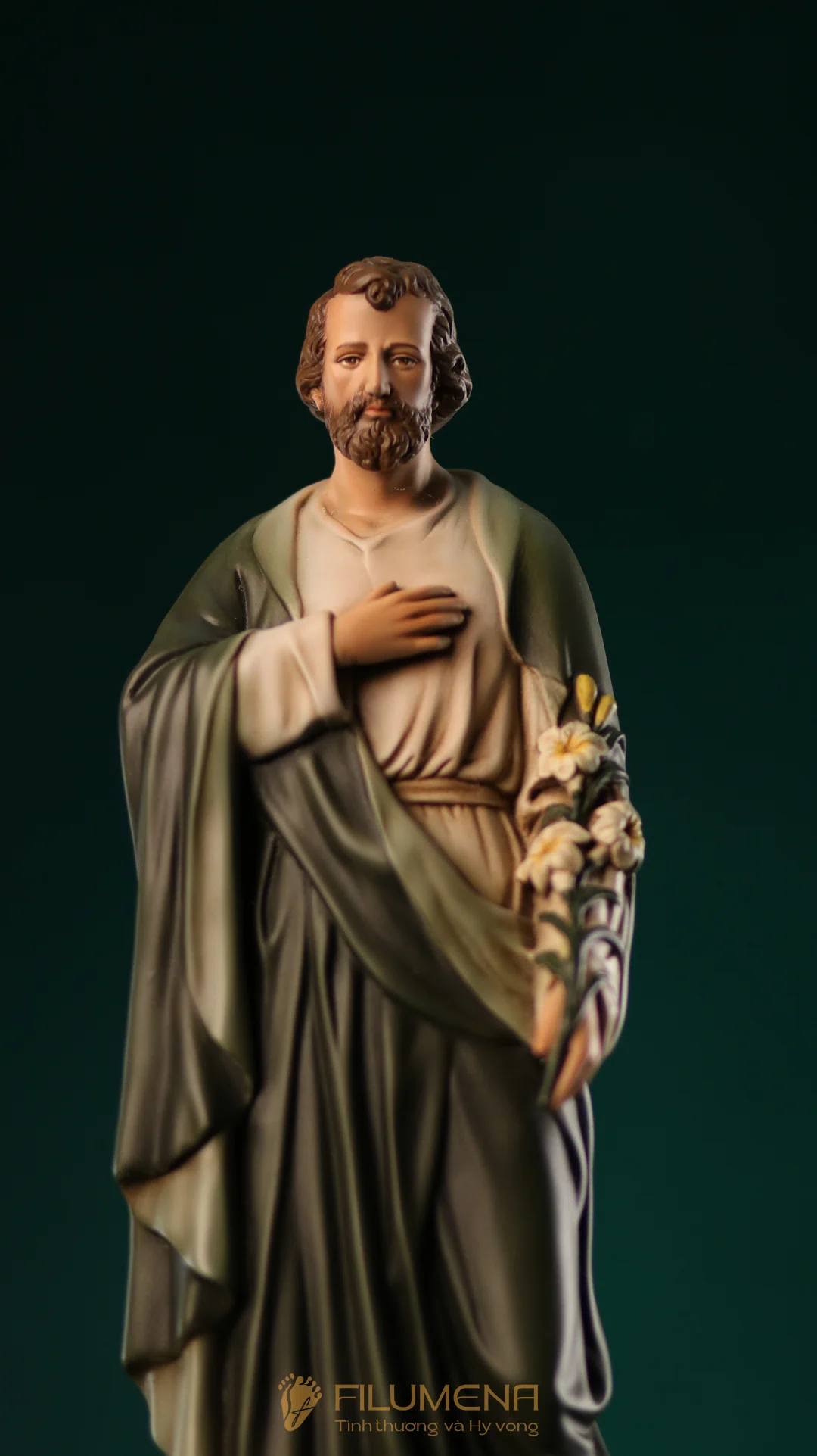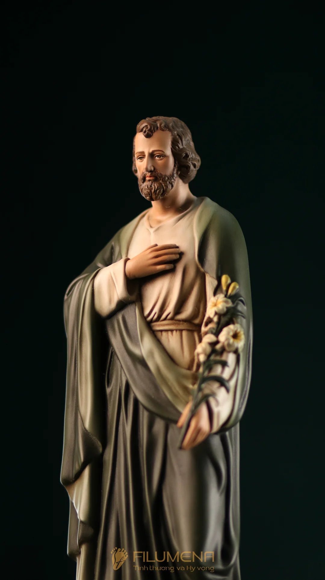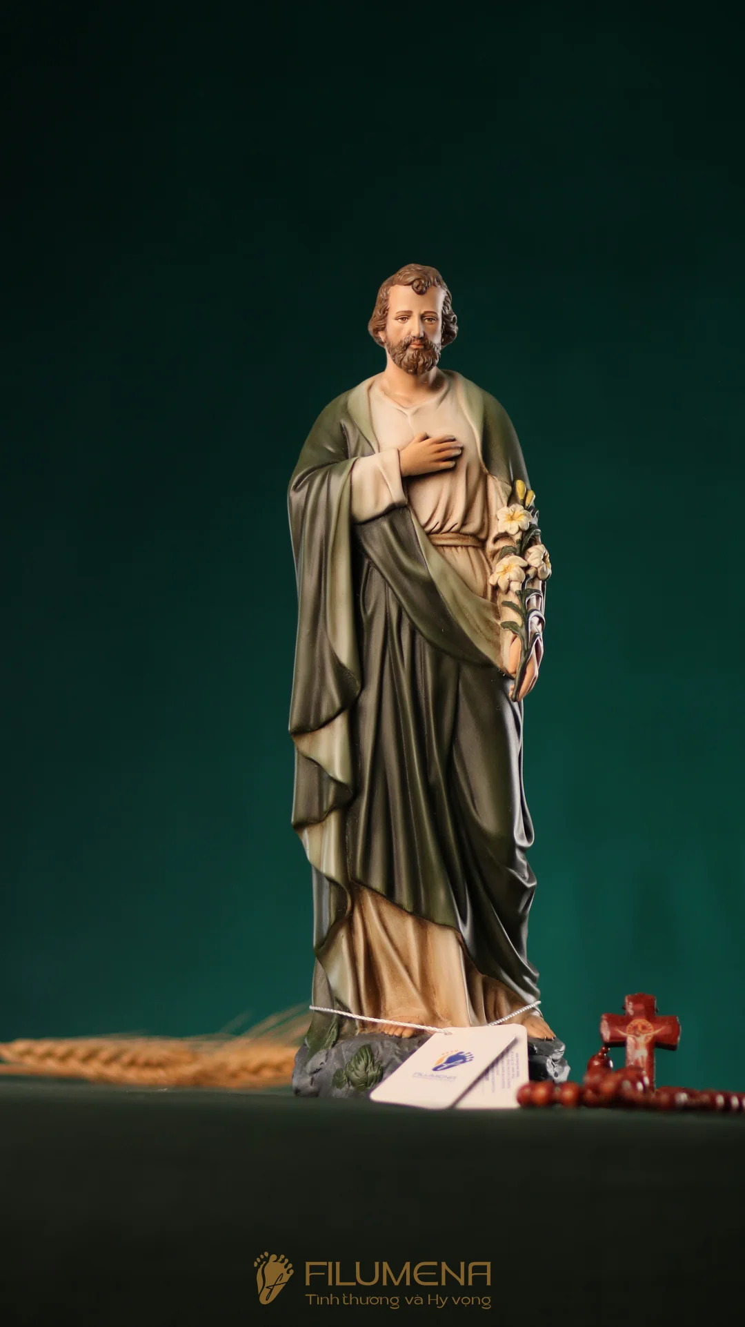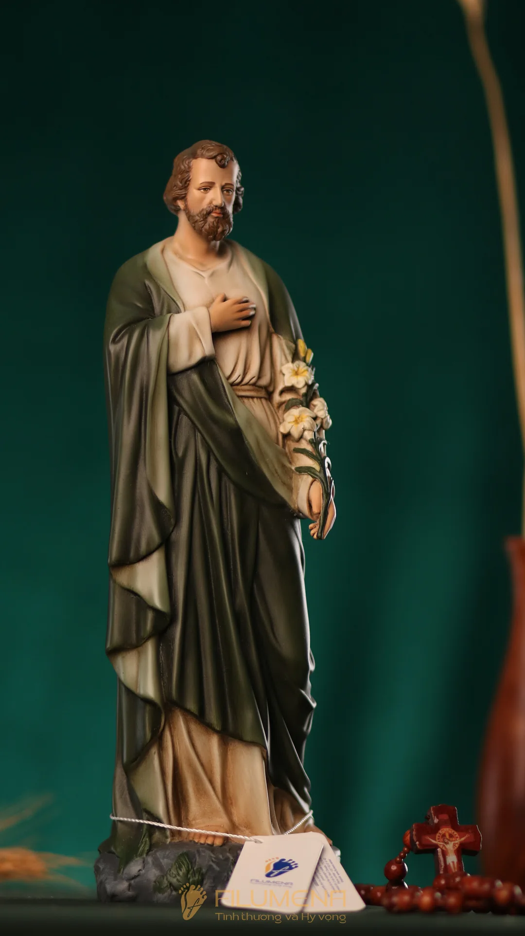 Tượng Thánh Giuse Hoa Huệ 30 cm, 40 cm màu xanh ô-liu M2