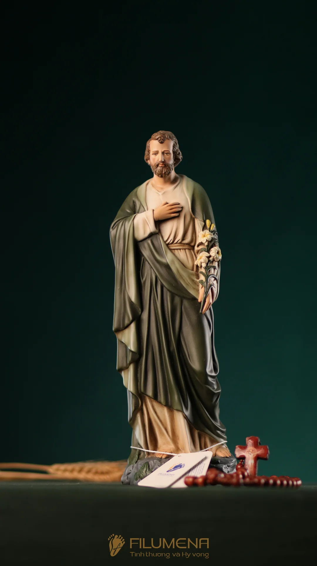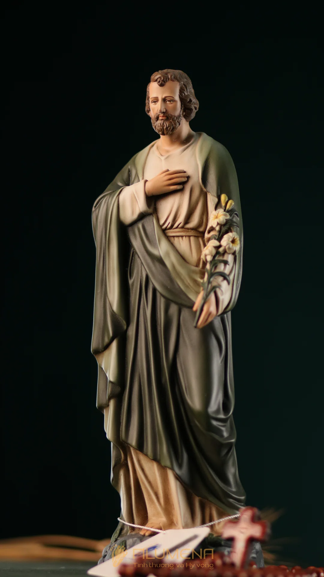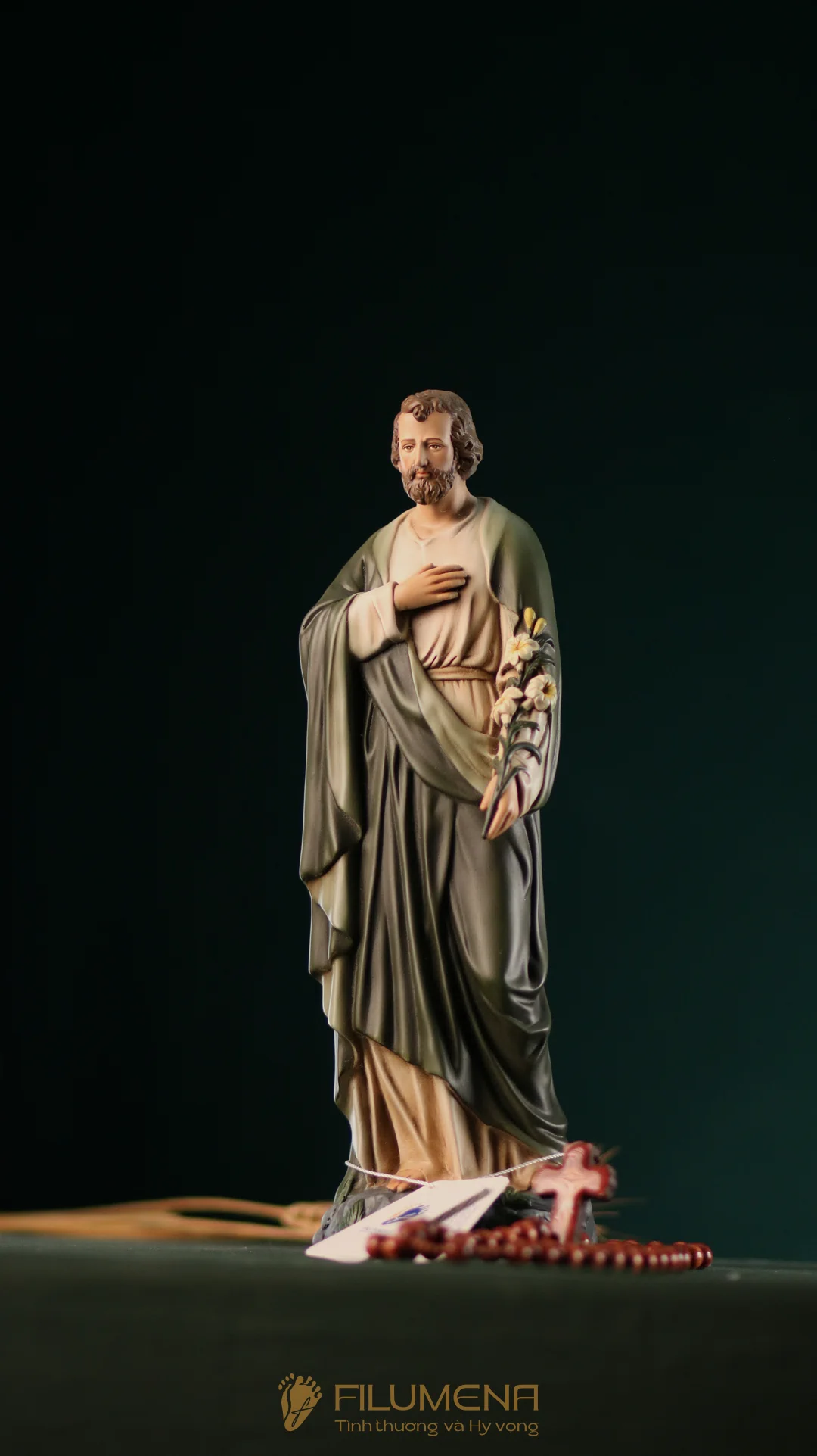 Tượng Thánh Giuse Hoa Huệ 30 cm, 40 cm màu xanh ô-liu M2