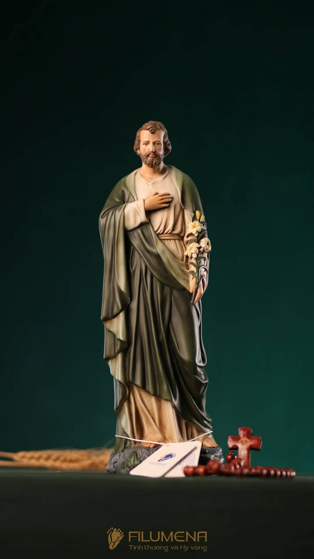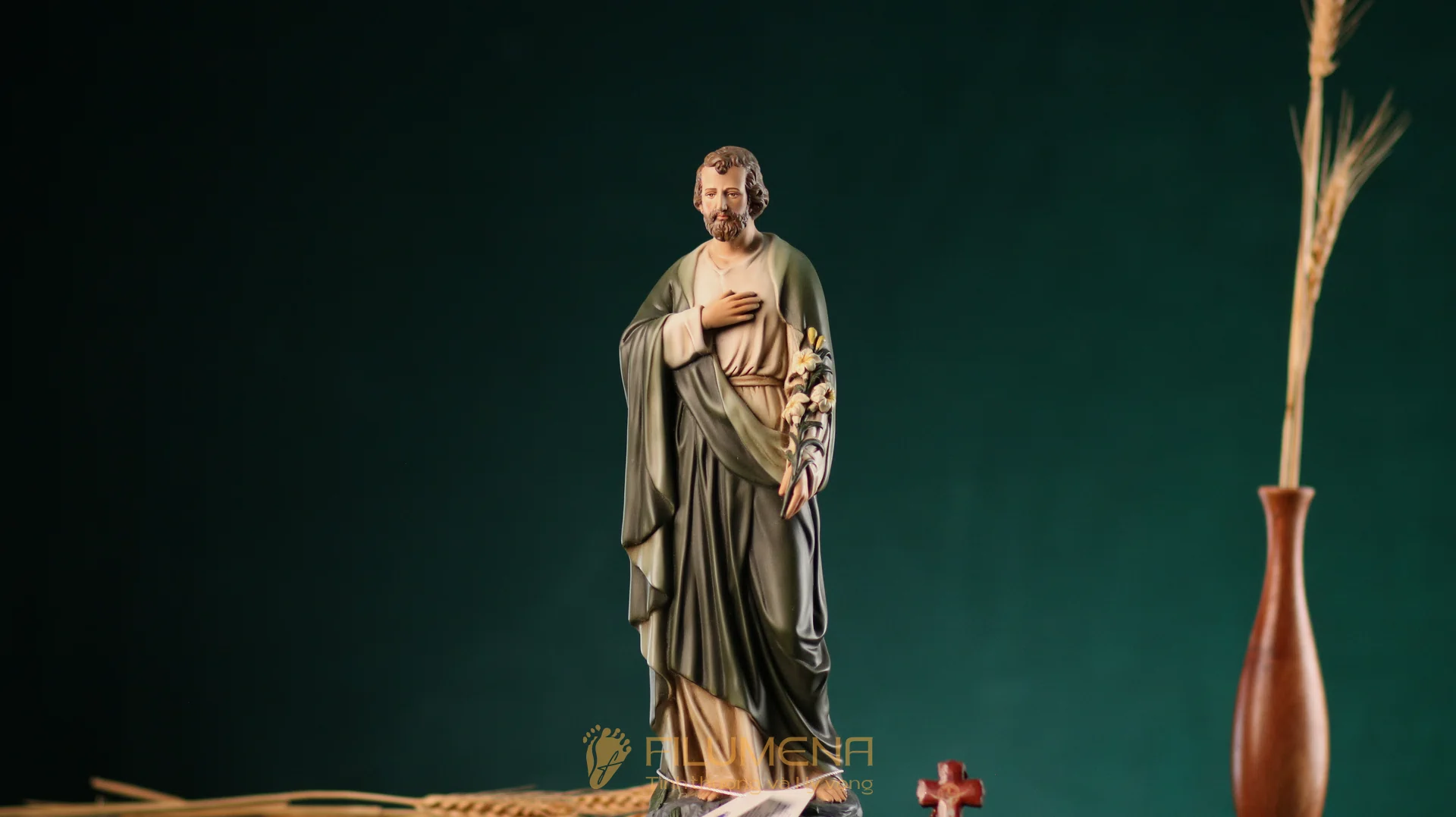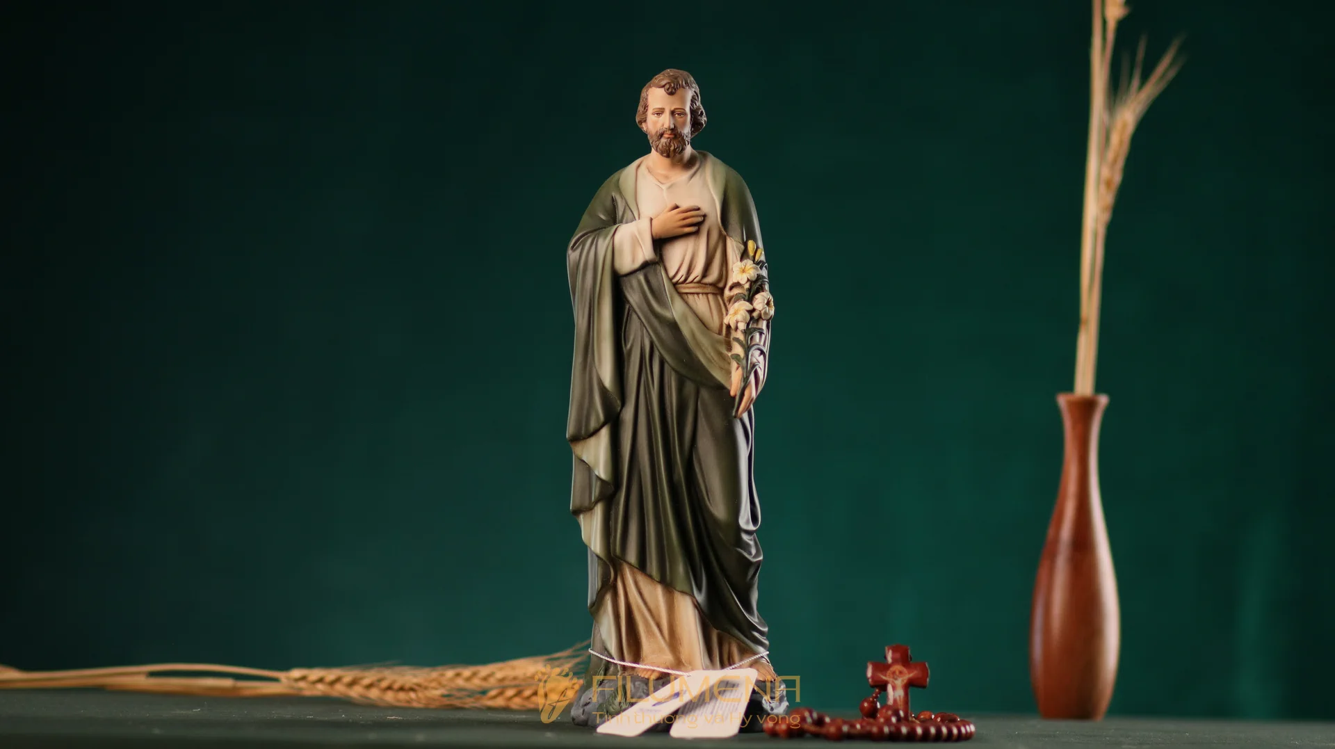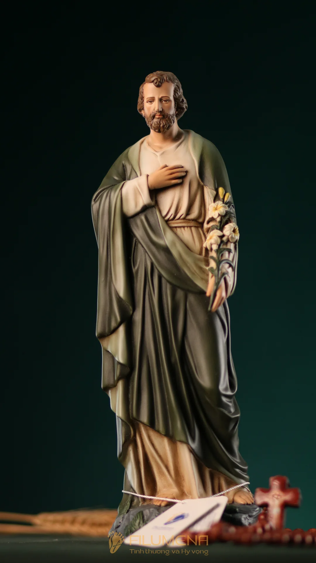Tượng Thánh Giuse Hoa Huệ 30 cm, 40 cm màu xanh ô-liu M2