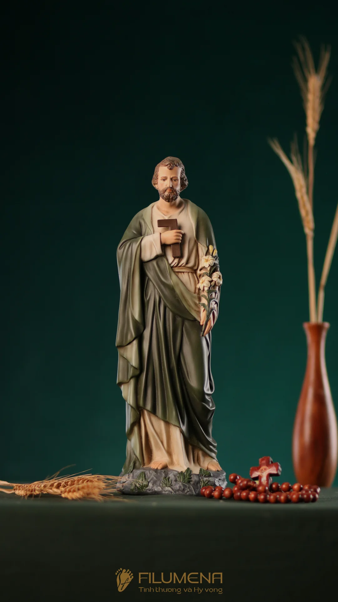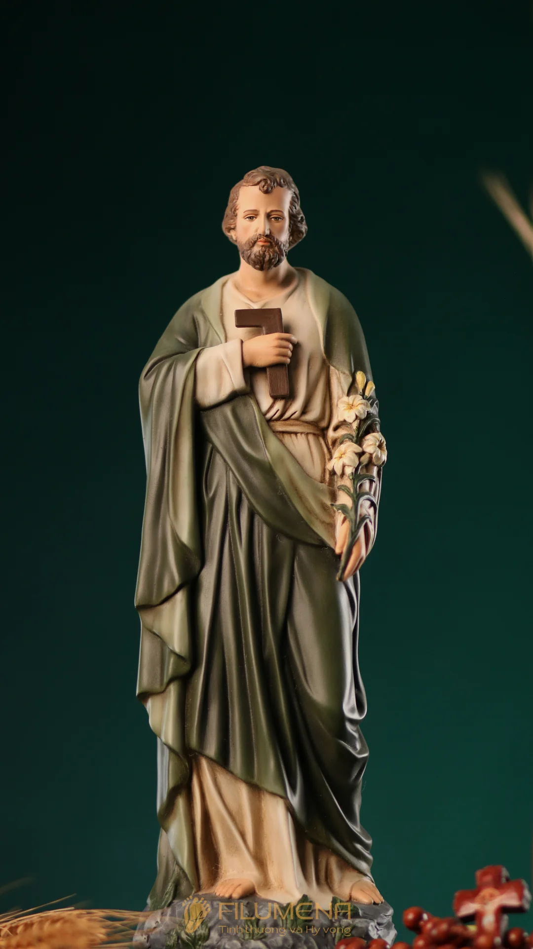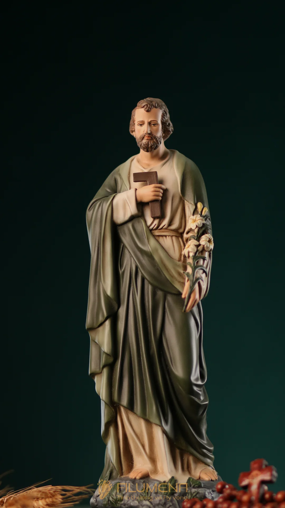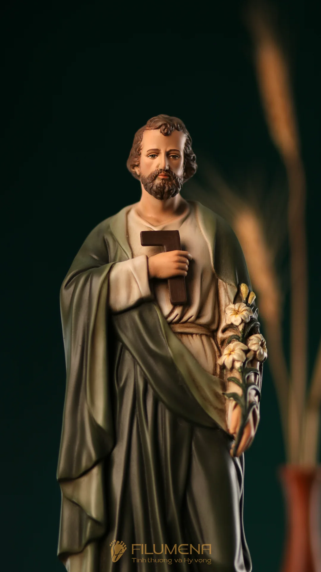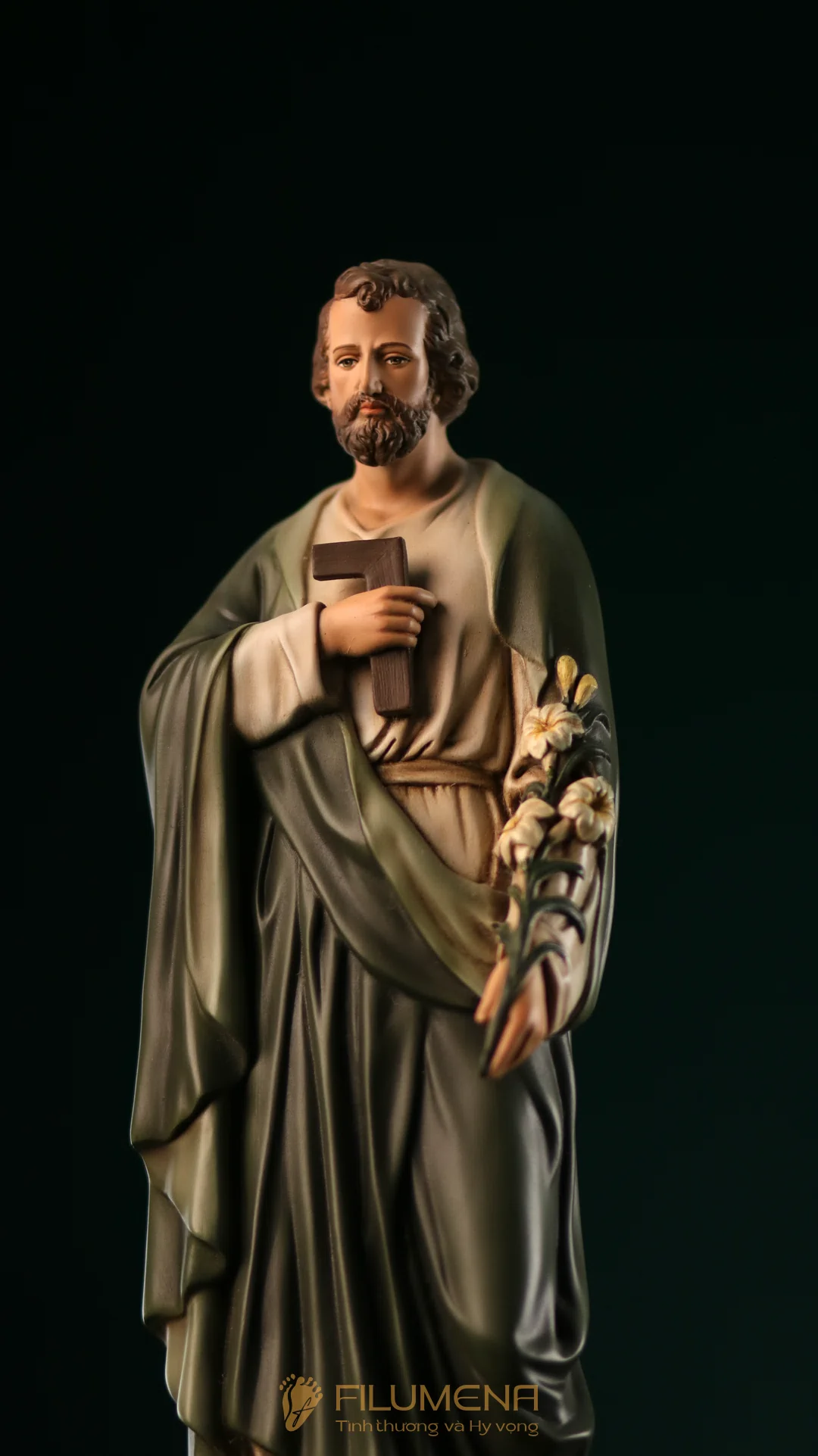 Tượng Thánh Giuse Thợ hiện có các kích thước: 15 cm, 20 cm, 30 cm và 40 cm, phù hợp để trưng bày trong nhà, trên bàn thờ gia đình hoặc làm quà tặng ý nghĩa cho người thân.