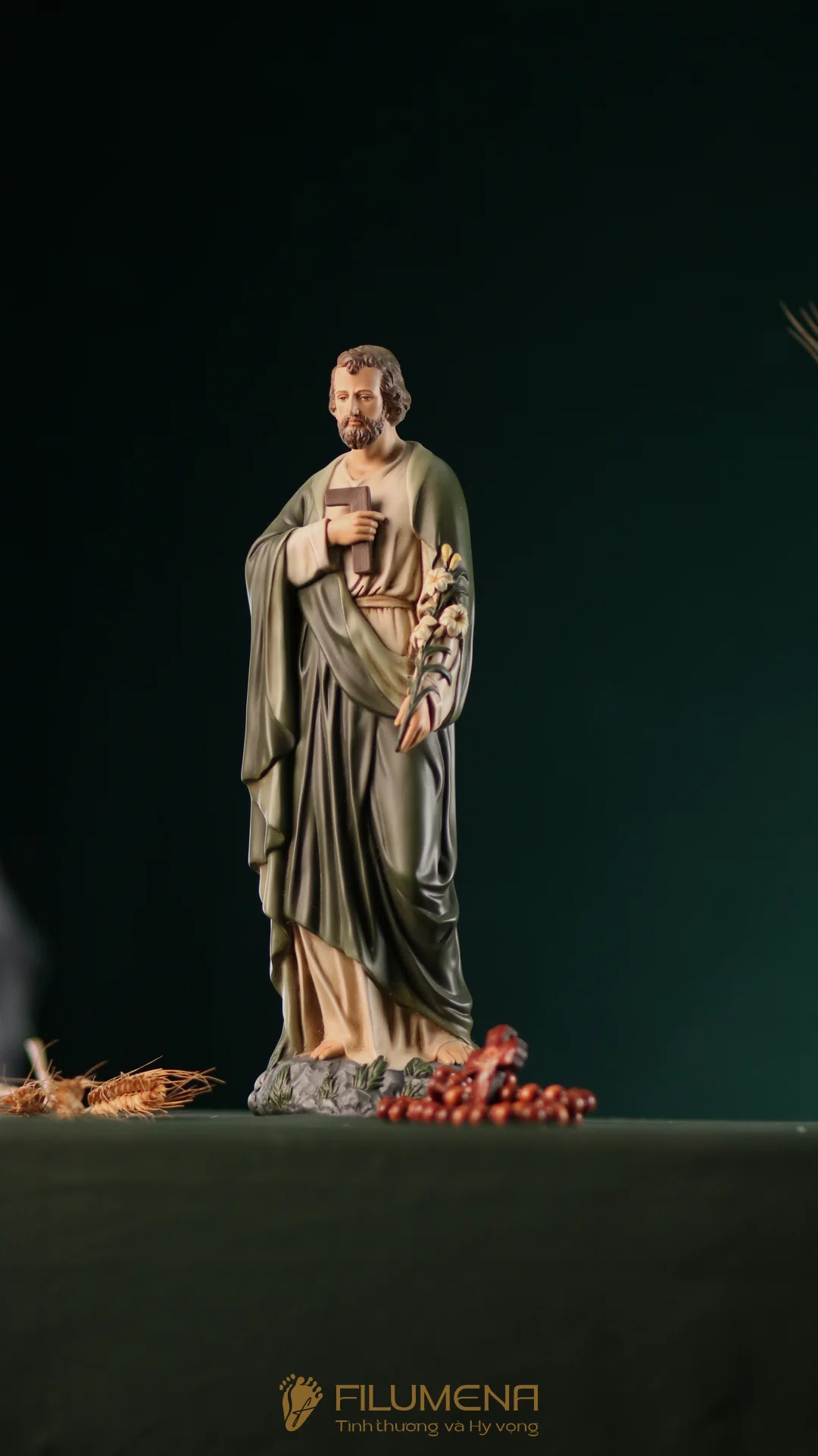 Tượng Thánh Giuse Thợ 30 cm, 40 cm màu xanh ô-liu M2